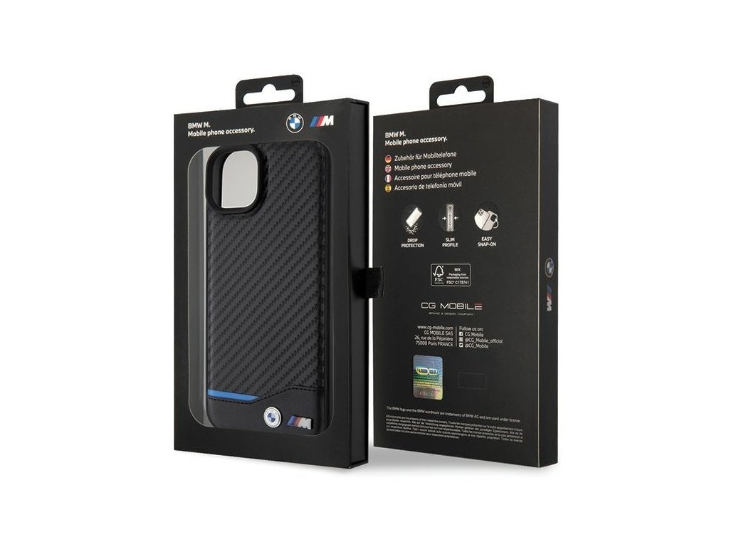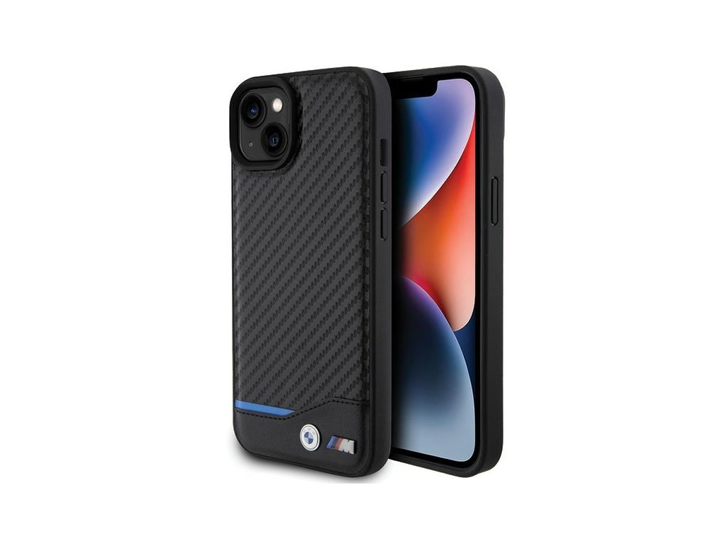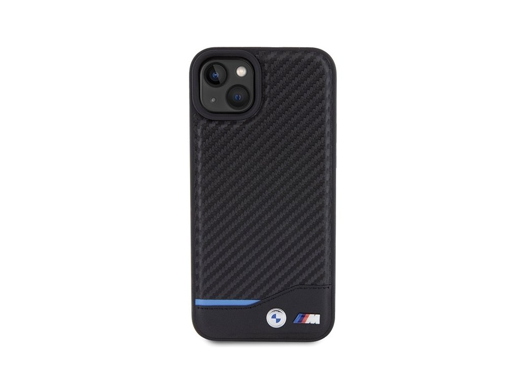 BMW kožený kryt Carbon pro iPhone 15 Plus – Černý