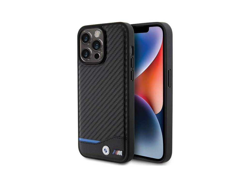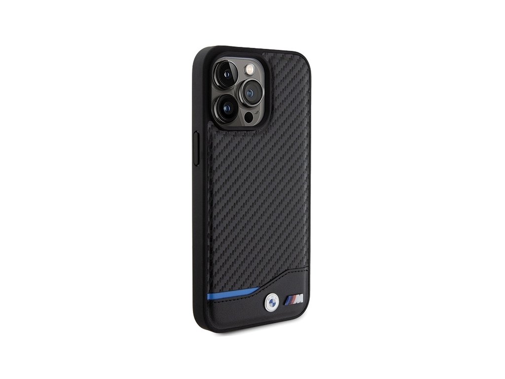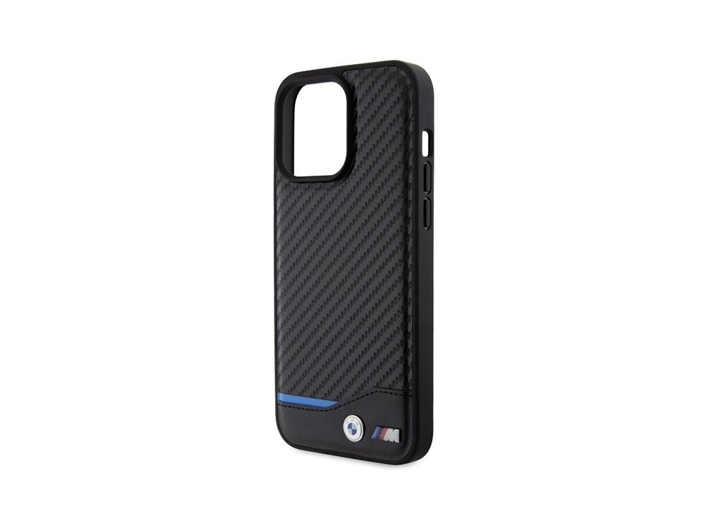BMW kožený kryt Carbon pro iPhone 15 Pro Max – Černý