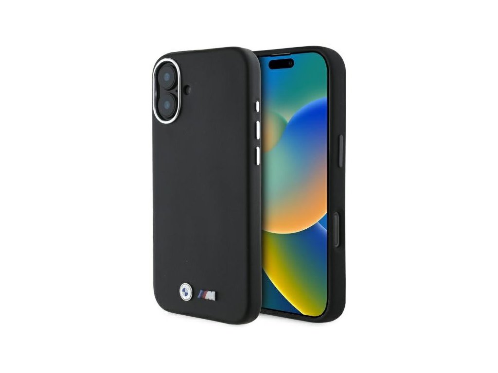 BMW Kryt Leather M Smooth s celoplošným kovovým rámem a MagSafe pro iPhone 16 Plus – černý