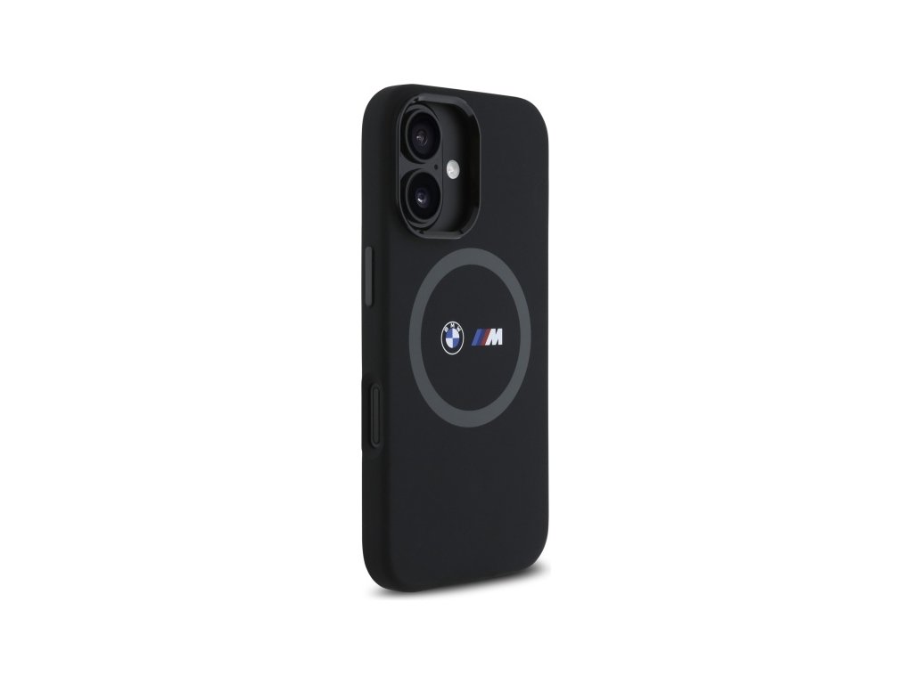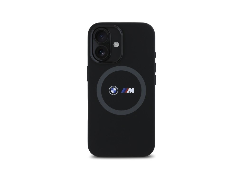 BMW MagSafe silikonový kryt M s potištěným prstencem pro iPhone 16 – Černý