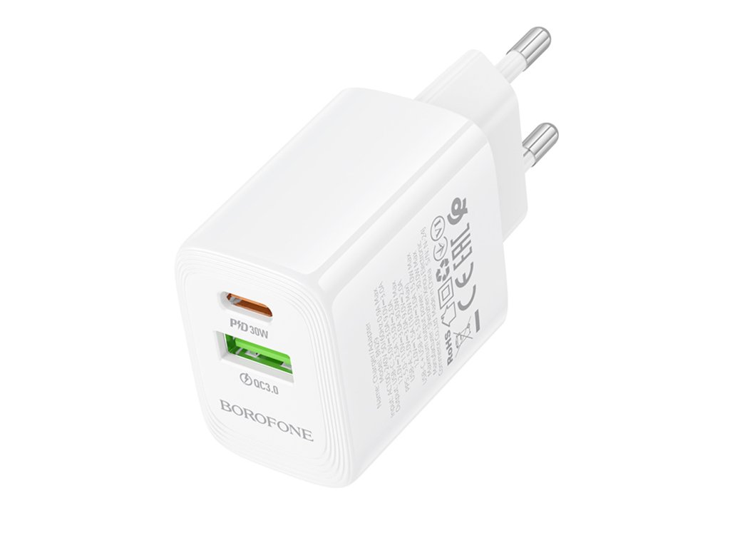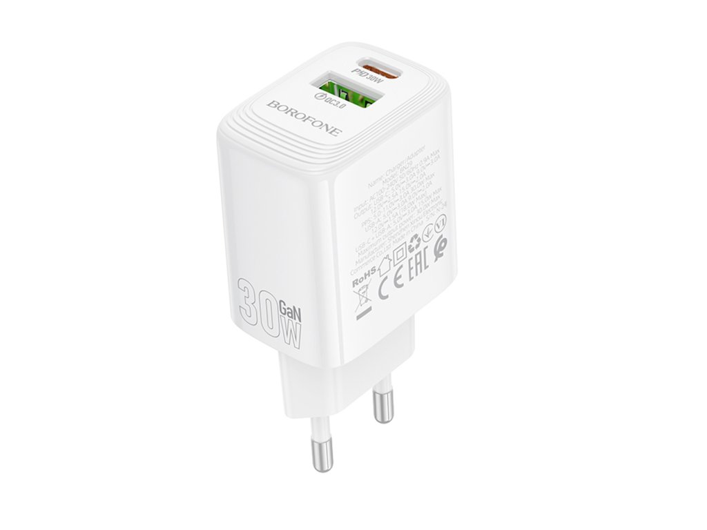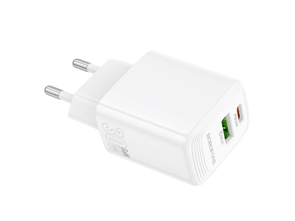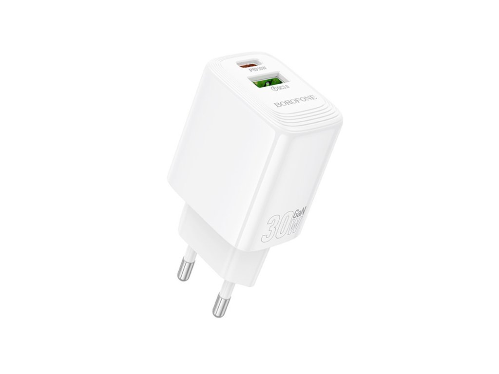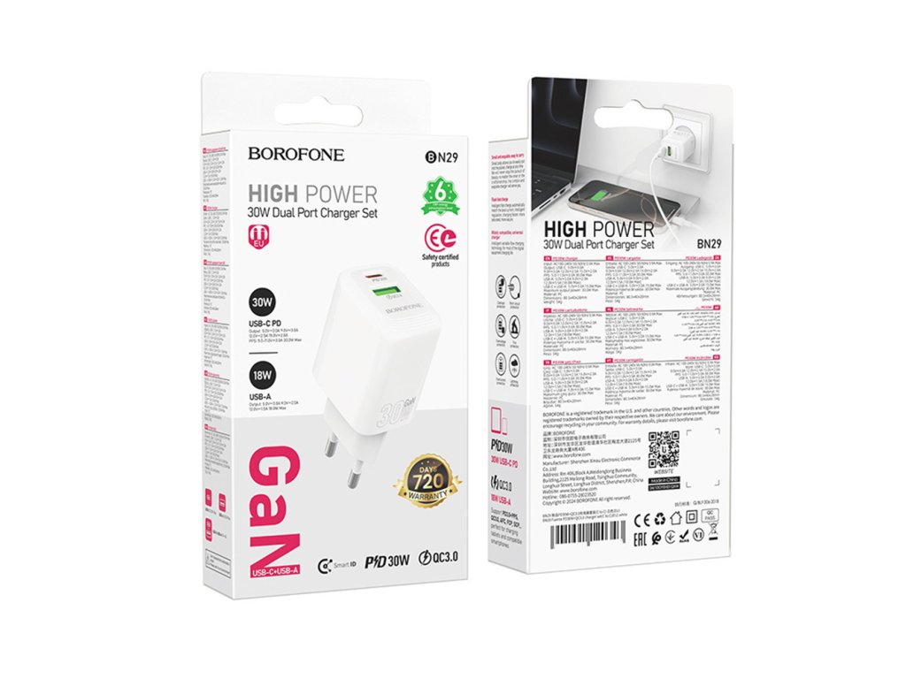 Borofone - Wall Charger Fuente BN29 síťová nabíječka (dual port, USB+USB-C, PD30W, QC3.0, GaN technologie) - bílá