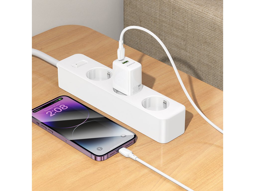 Vybavena výkonem 30W a inteligentním designem 2v1, tato nabíječka do zásuvky Type-C, USB inteligentně distribuuje energii a zvyšuje rychlost nabíjení.