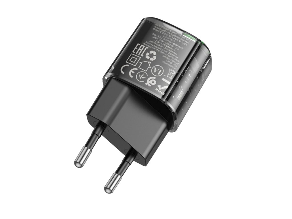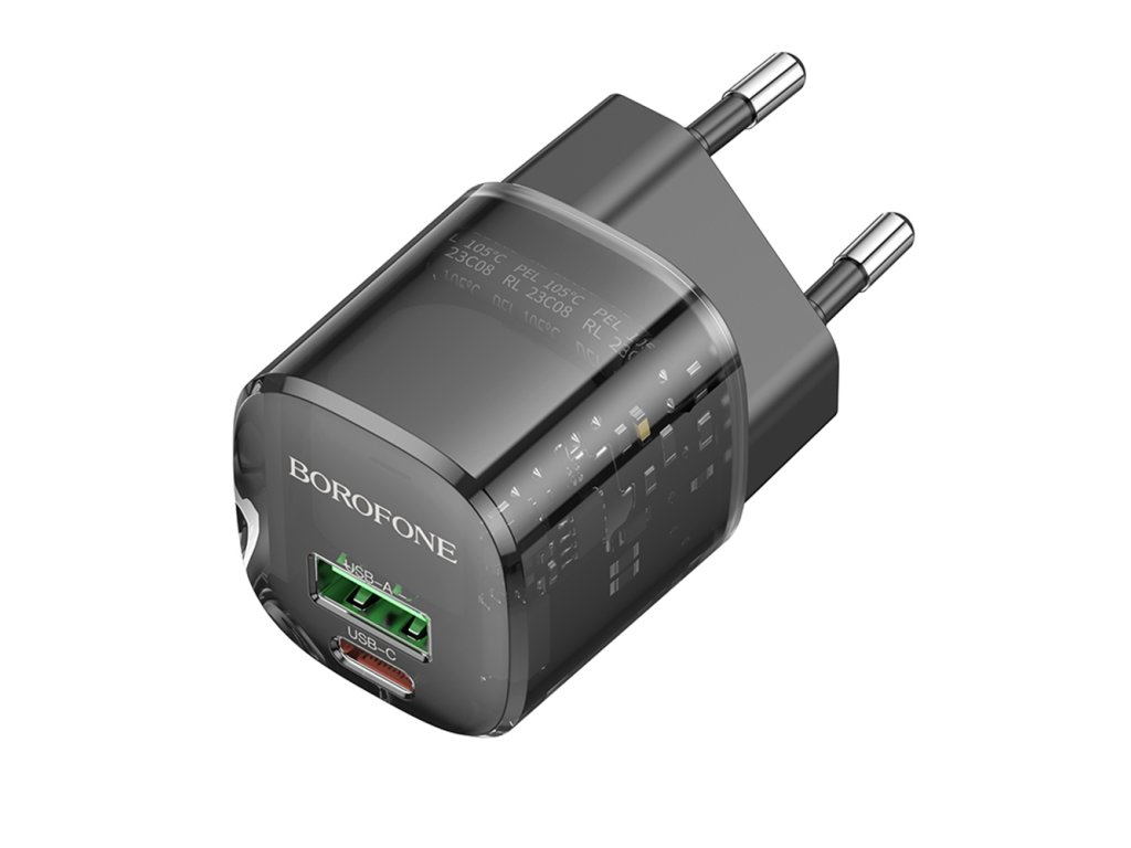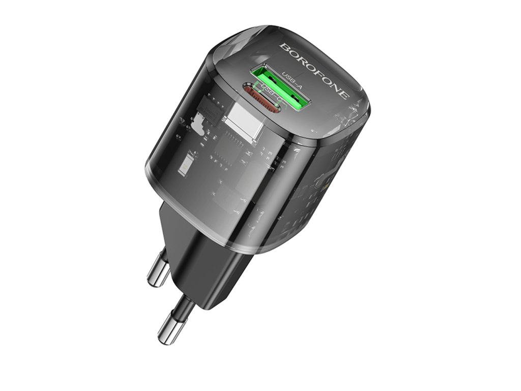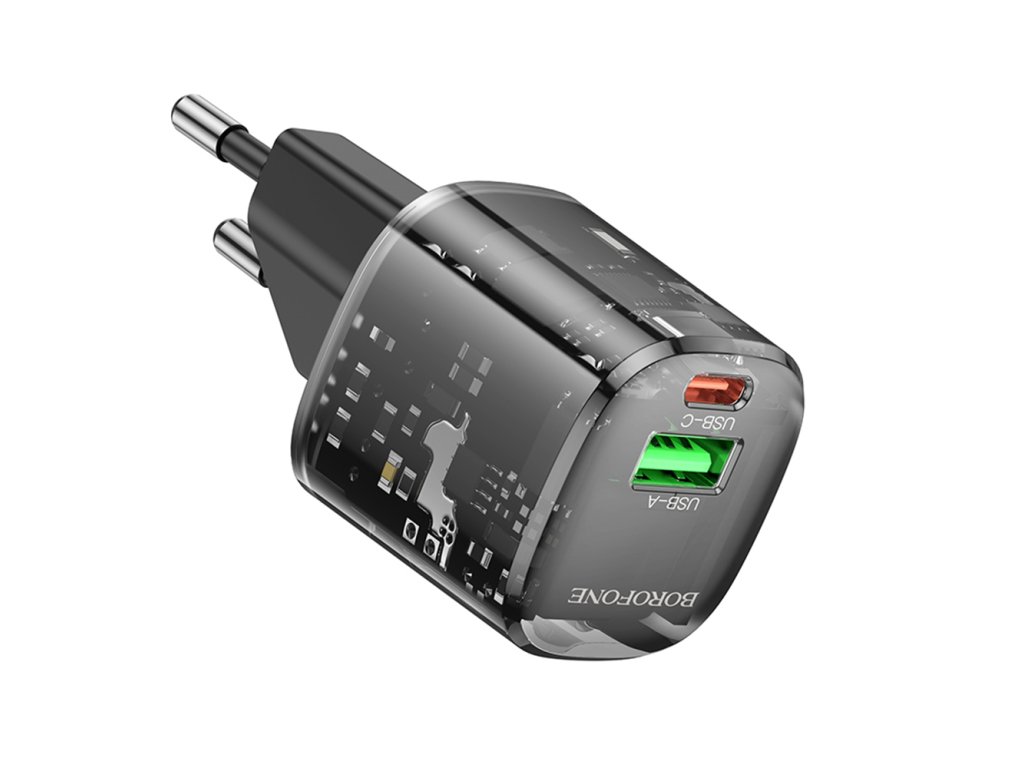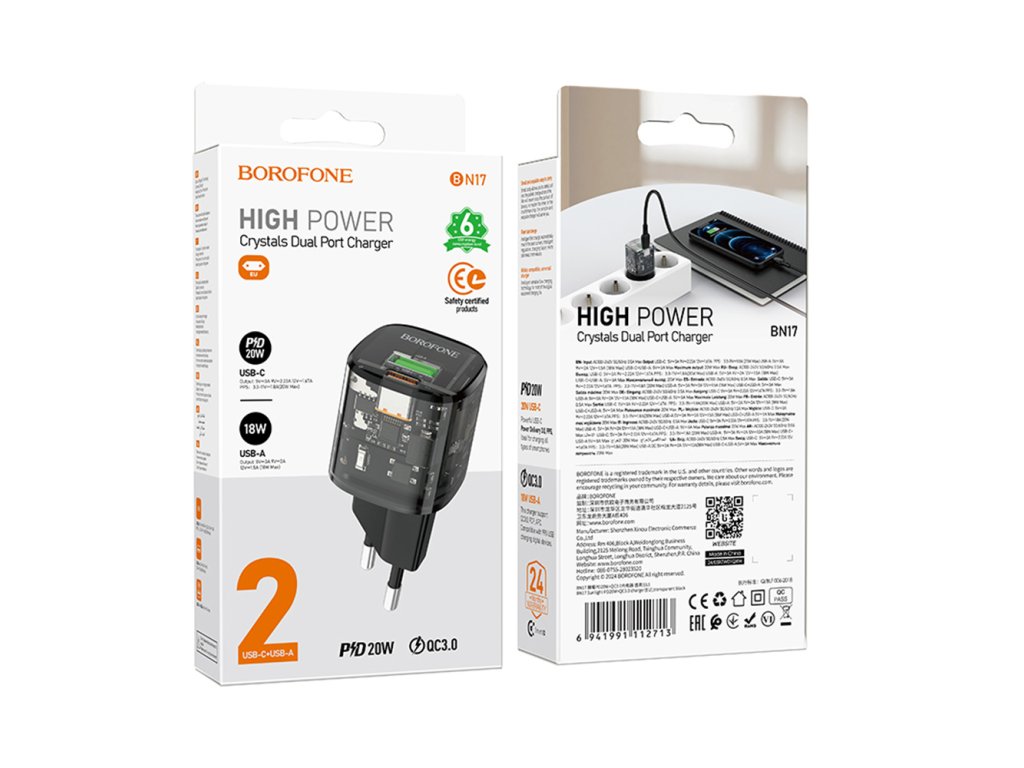 Borofone - Wall Charger Sunlight BN17 síťová nabíječka (dual port, USB-C+USB-A, 5V/3A, PD20W, QC3.0) - průhledná/černá