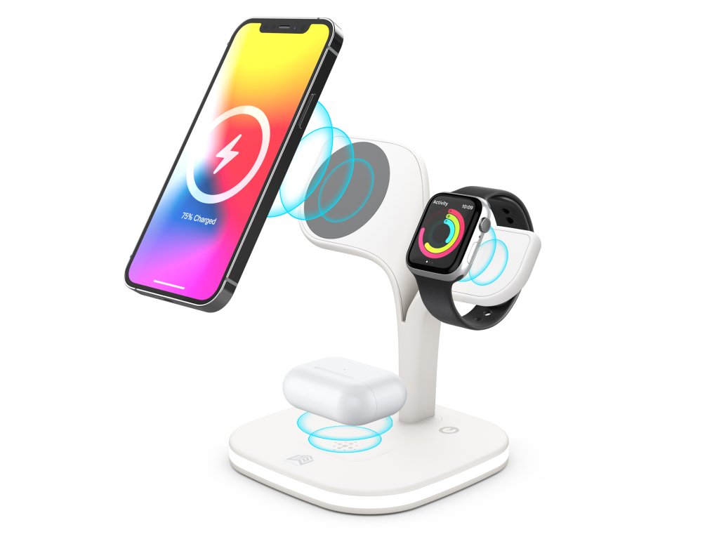 Dizajnová stolná Qi 5v1 nabíjačka pre Apple s LED svetlom UD22 | Bombazlava.sk - UNBOXING