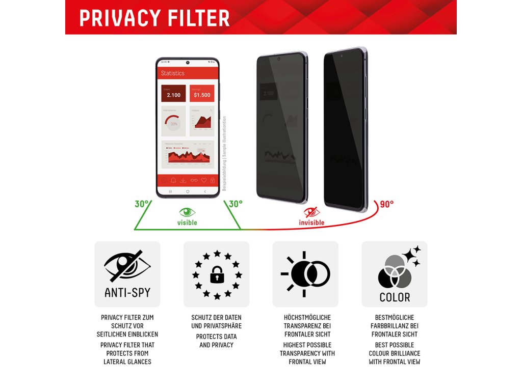 Pozor! Folie privacy NENÍ kompatibilní s integrovaným otiskovým senzorem na displeji.