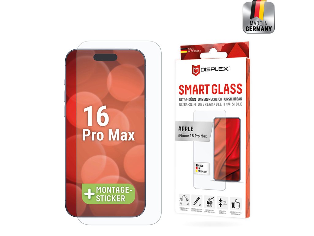 Seznamte se s Displex!⭐ Užijte si kvalitu německých produktů a objednejte si prémiovou folii iPhone 16 Pro Max, která je flexibilní a odolná. Zvolte excelenci!