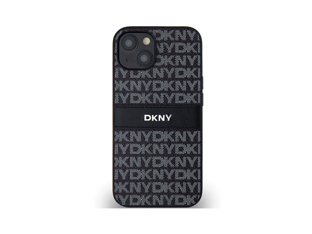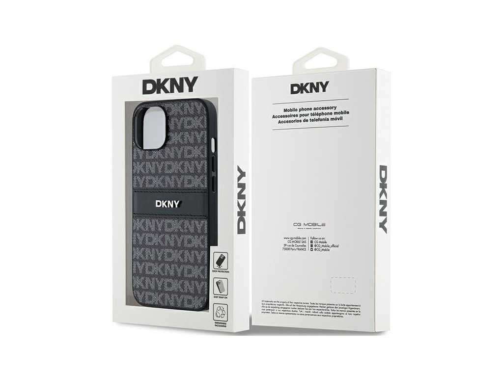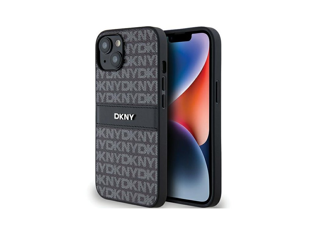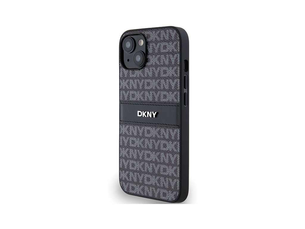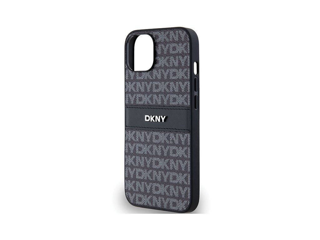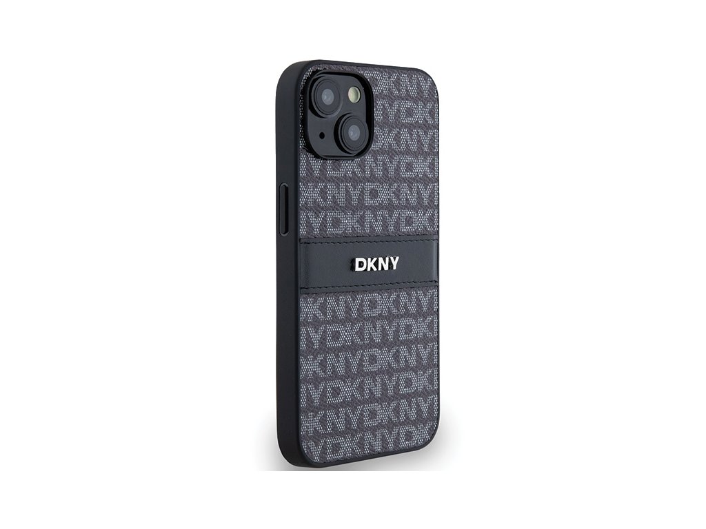 DKNY kožený kryt na iPhone 15 s monovzorem, pruhem a kovovým logem (DKHCP14SPRTHSLK) - černý