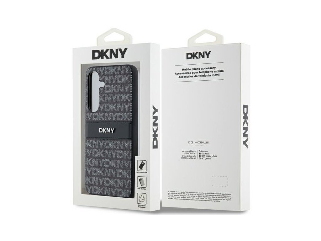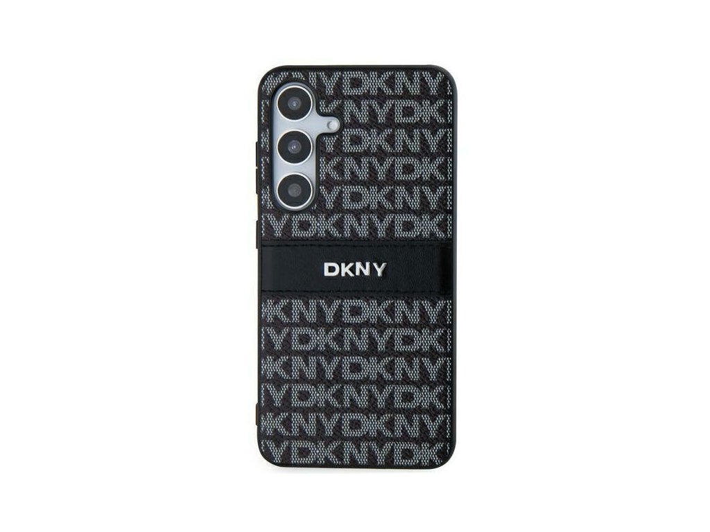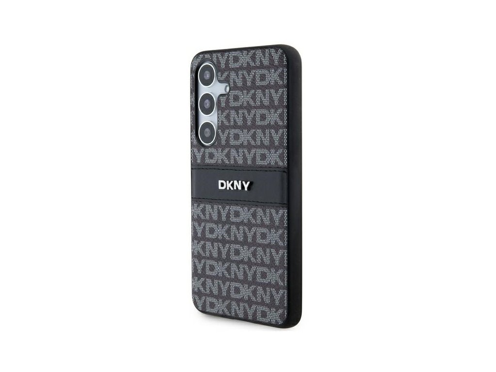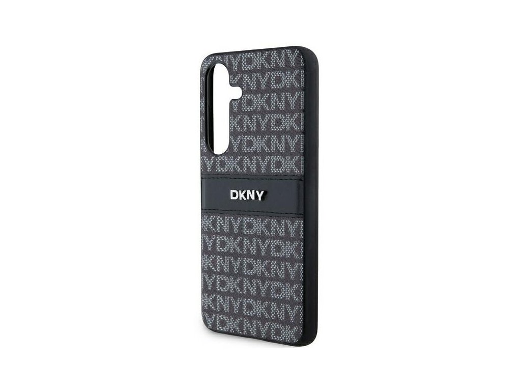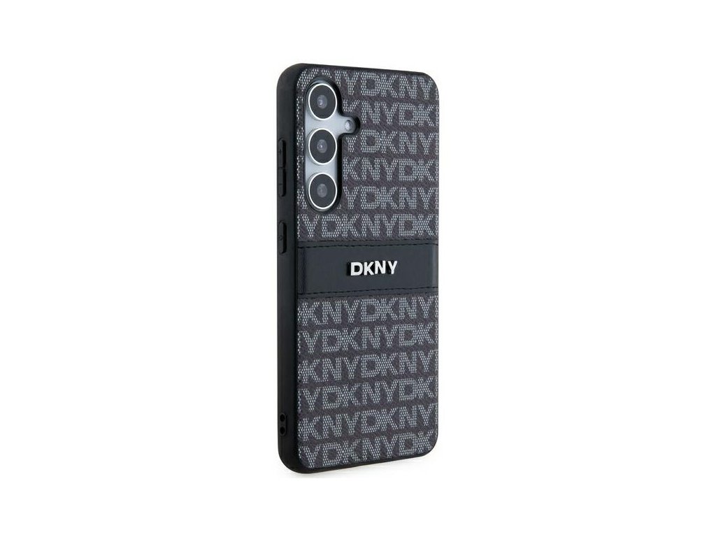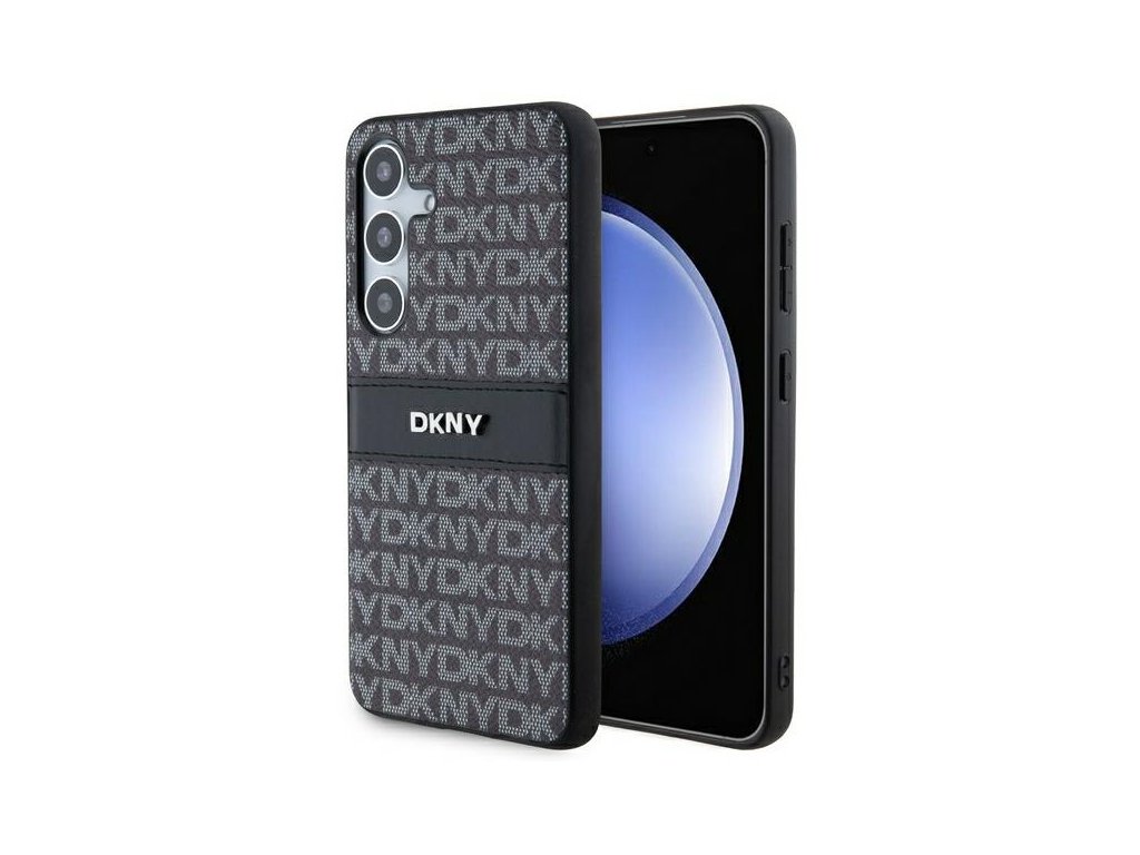 DKNY Kožený kryt s monovzorem, pruhem a kovovým logem pro Samsung Galaxy S24 Plus – černý