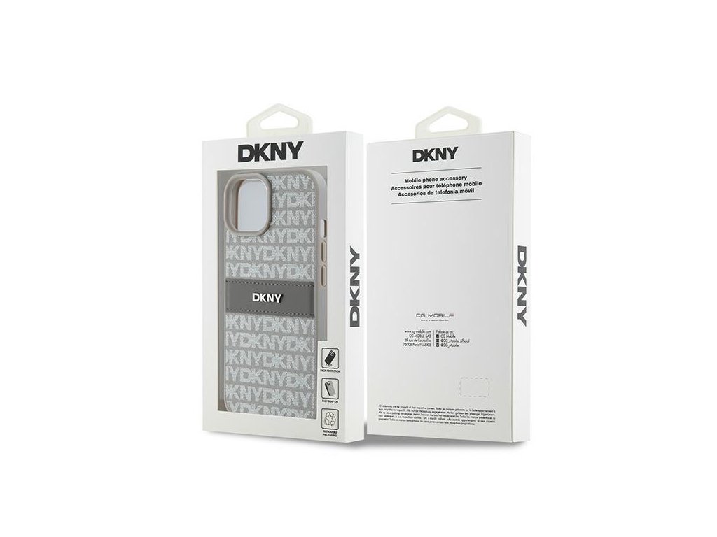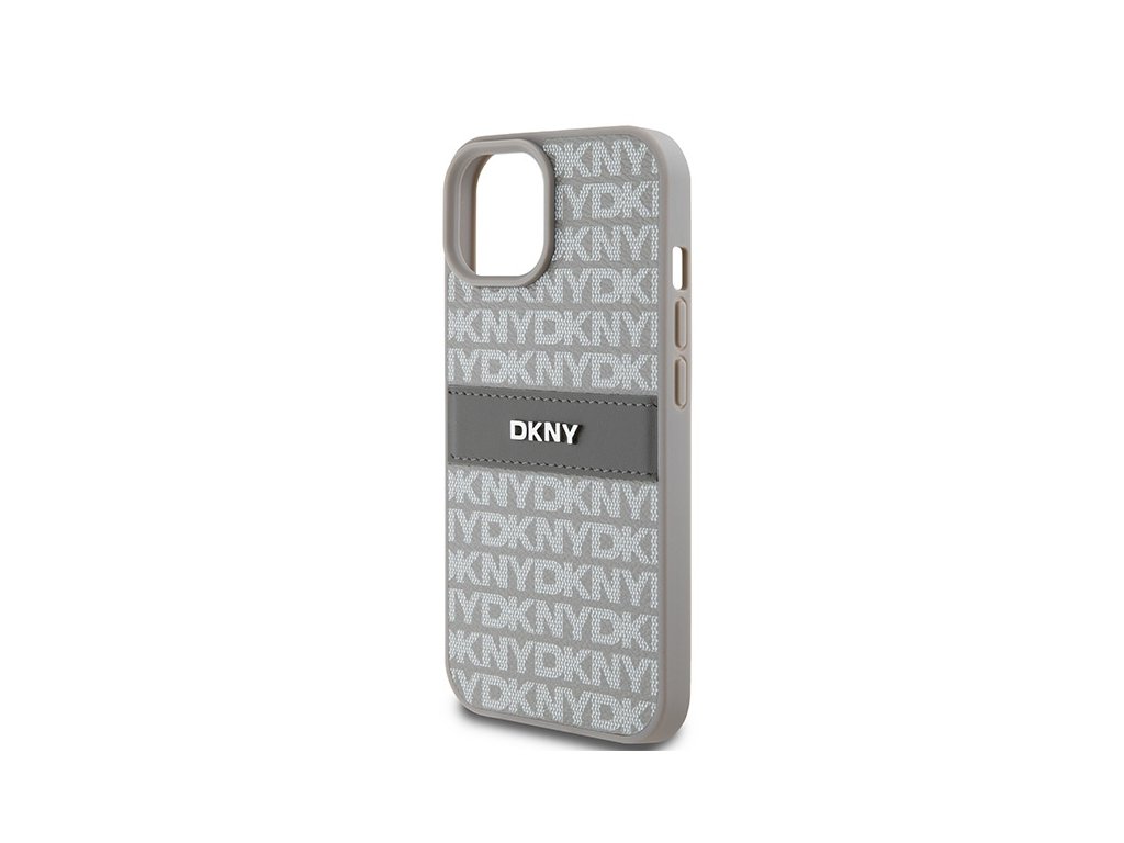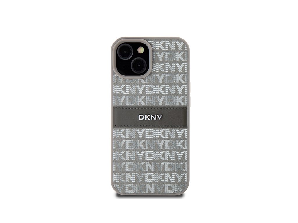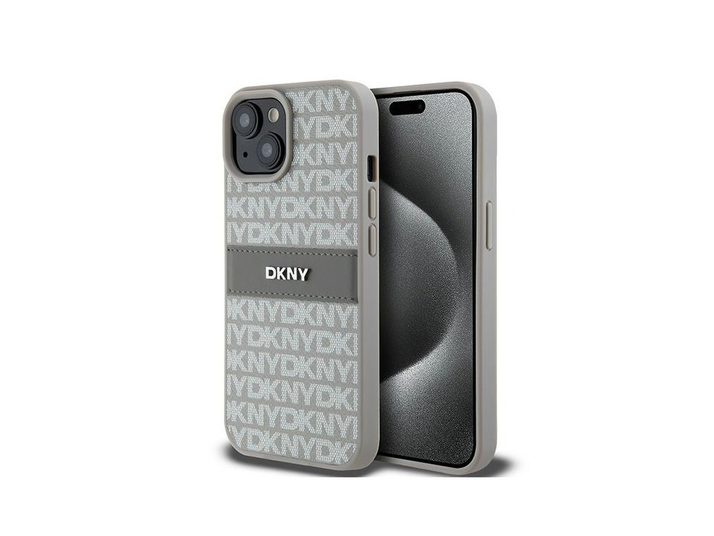 DKNY kožený obal Mono Stripe s kovovým logem (DKHCP15MPRTHSLE) - iPhone 15 Plus - Béžový