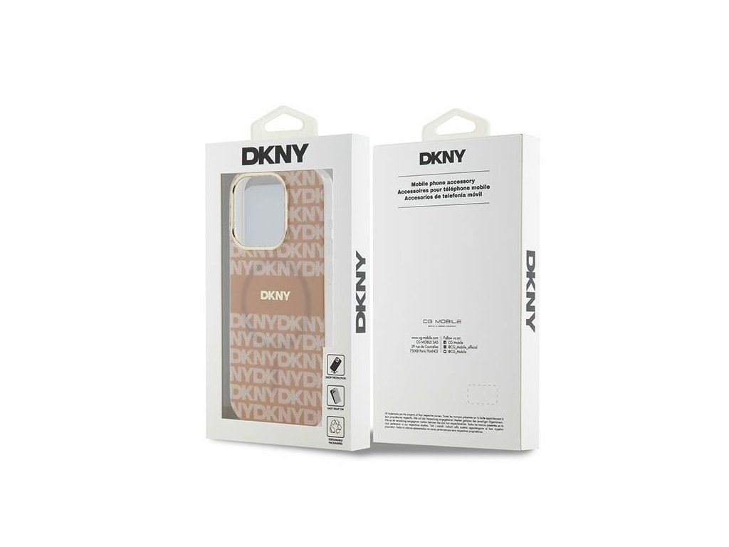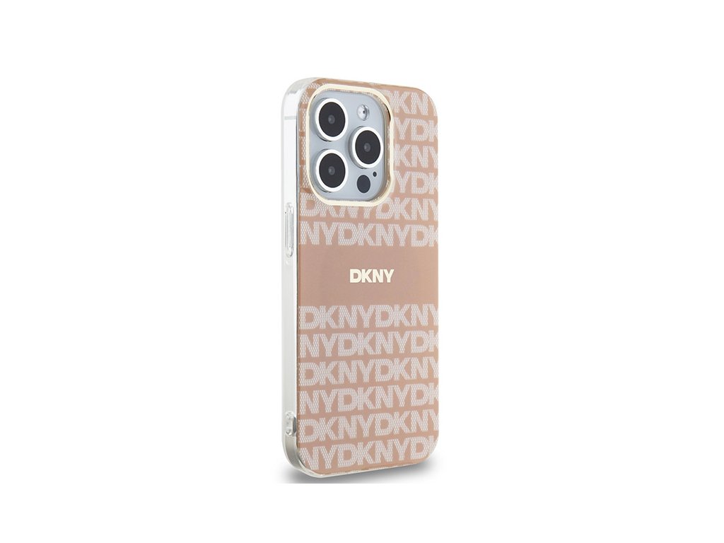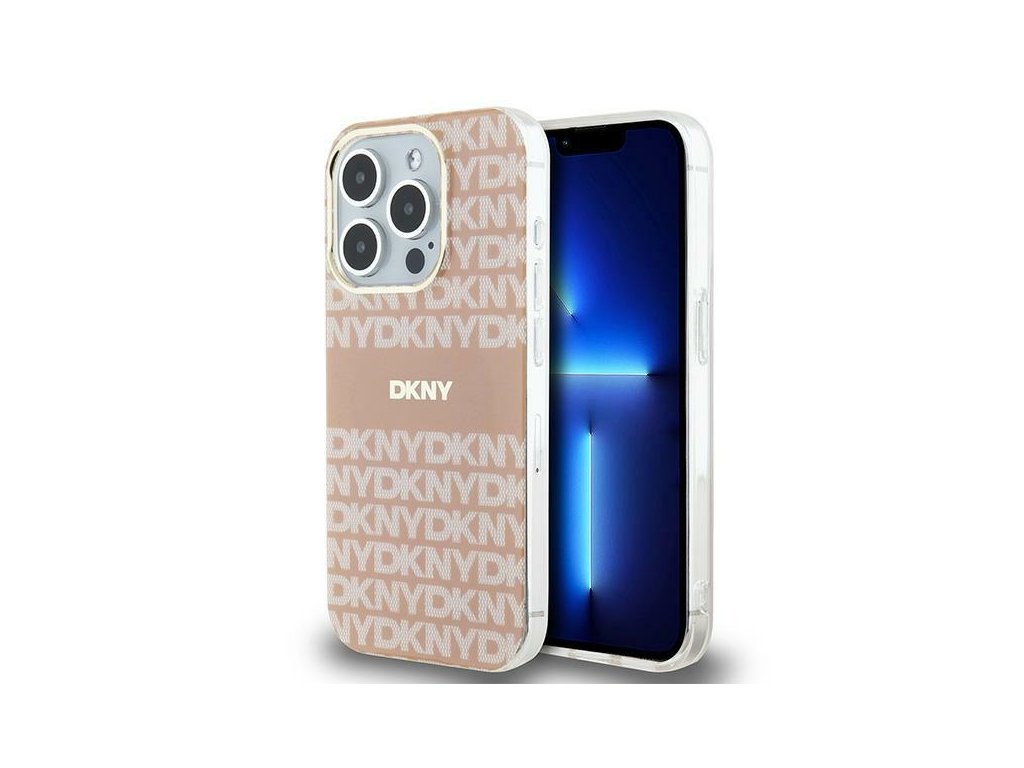 DKNY pevný kryt na iPhone 15 Pro Max s monovzorem a pruhy a MagSafe (DKHMP15XHRHSEP) - růžový