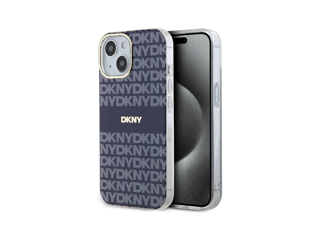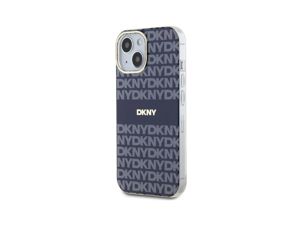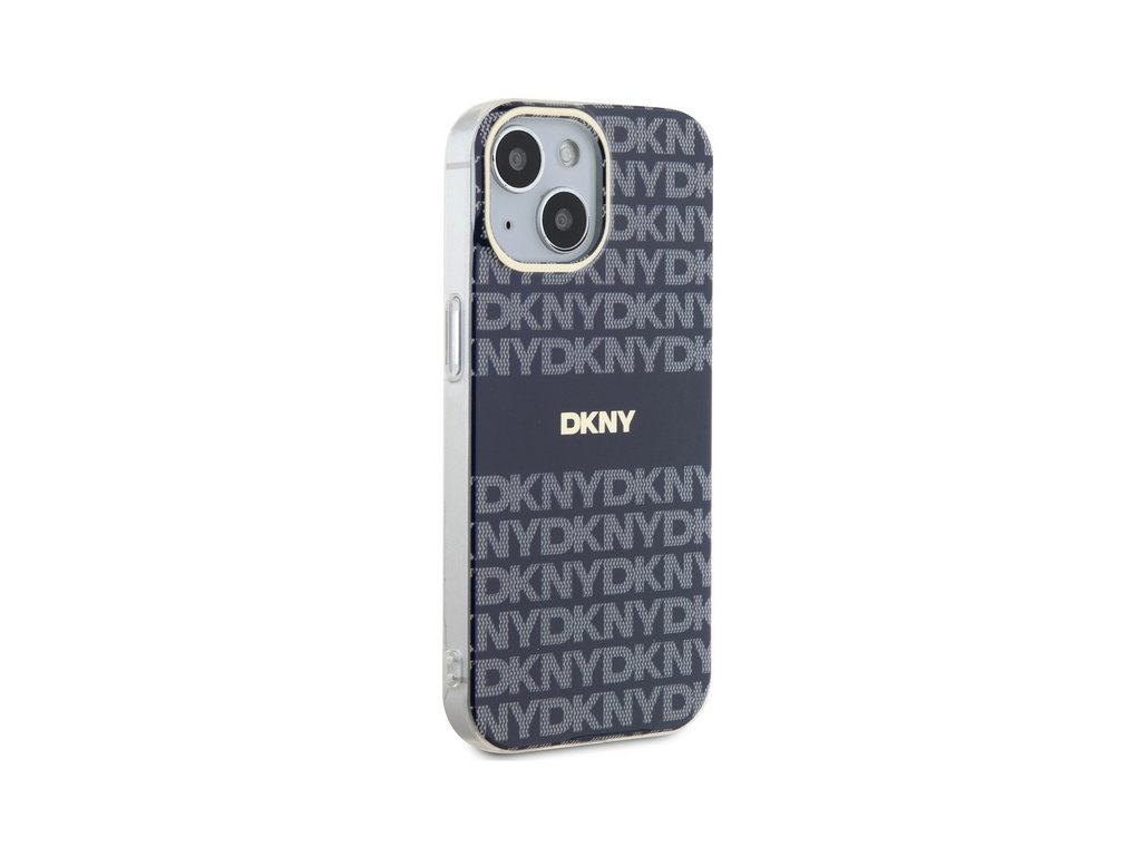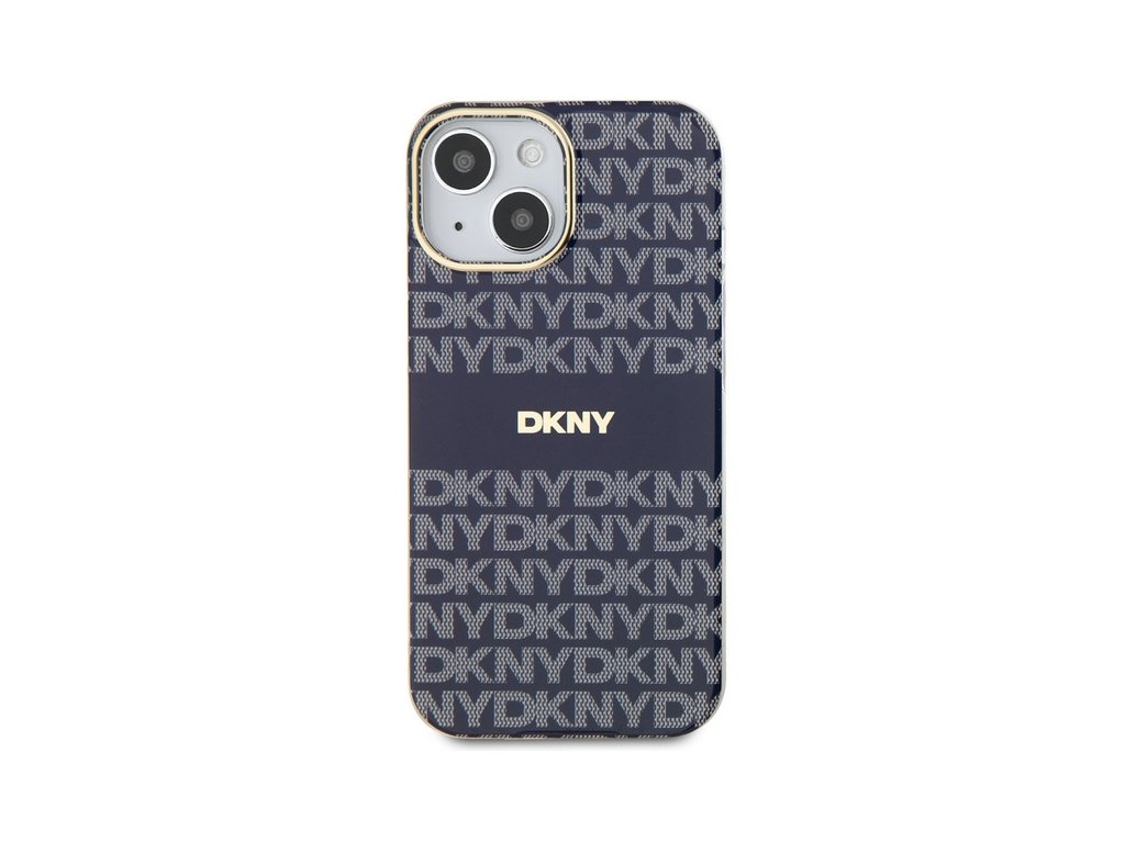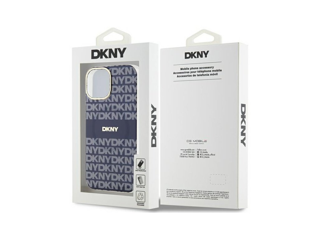 DKNY pevný kryt na iPhone 15 s monovzorem a pruhy a MagSafe (DKHMP15SHRHSEB) - modrý