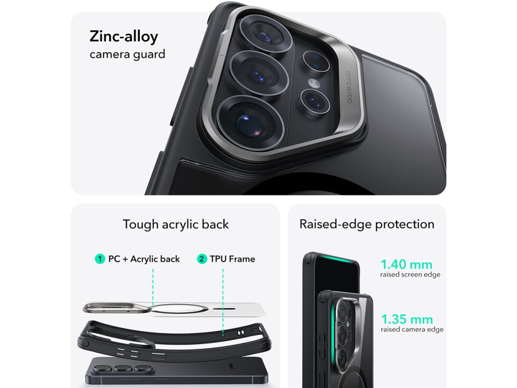 Obal byl speciálně vybaven zesílenými rohy s vzduchovými polštářky a umožňuje bezdrátové nabíjení díky ultra tenké tloušťce.