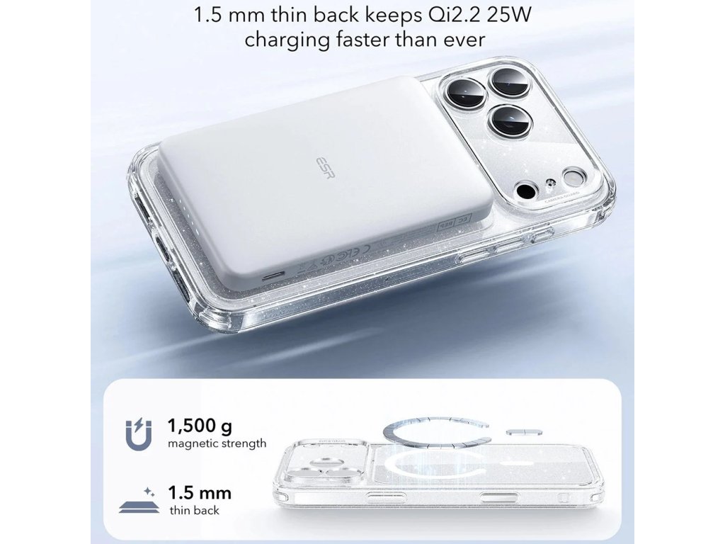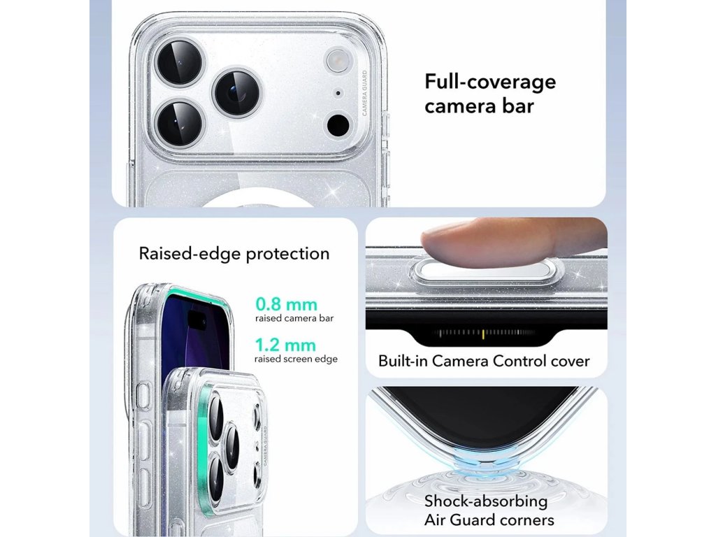 ESR – Classic Hybrid HaloLock ochranný obal na iPhone 17 Pro – třpytivě průhledný