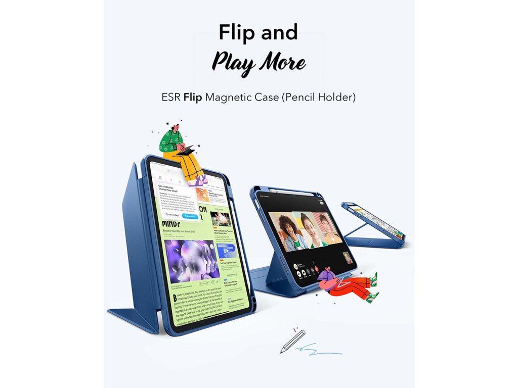 ESR – Flip Hybrid skládací pouzdro s držákem na stylus pro iPad 10 (2022) 10.9 / 11 (2025) – modré
