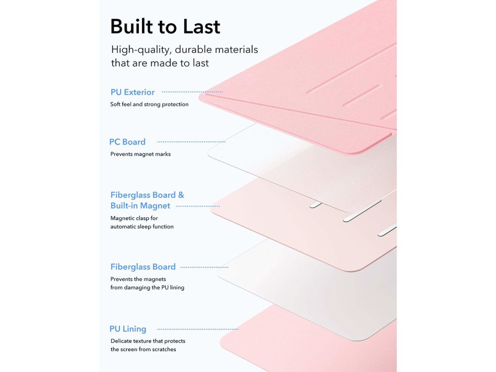 Tyto dvě prémiové materiály zajišťují odolnost krytu typu kniha iPad 10 (2022) 10.9 a určují její elegantní vzhled. Přidejte nyní do košíku odolný kryt ESR.