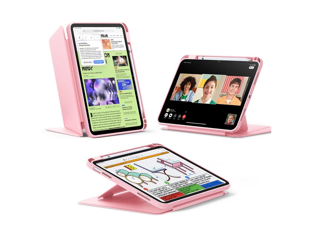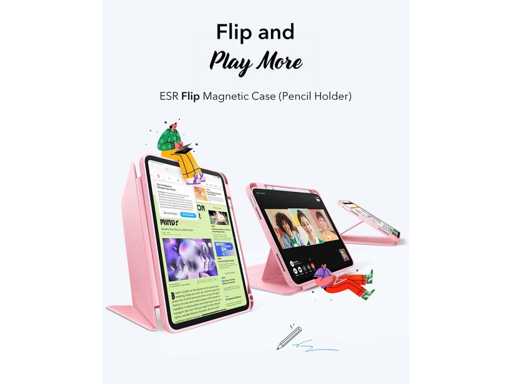 ESR – Flip Hybrid skládací pouzdro s držákem na stylus pro iPad 10 (2022) 10.9 / 11 (2025) – růžové