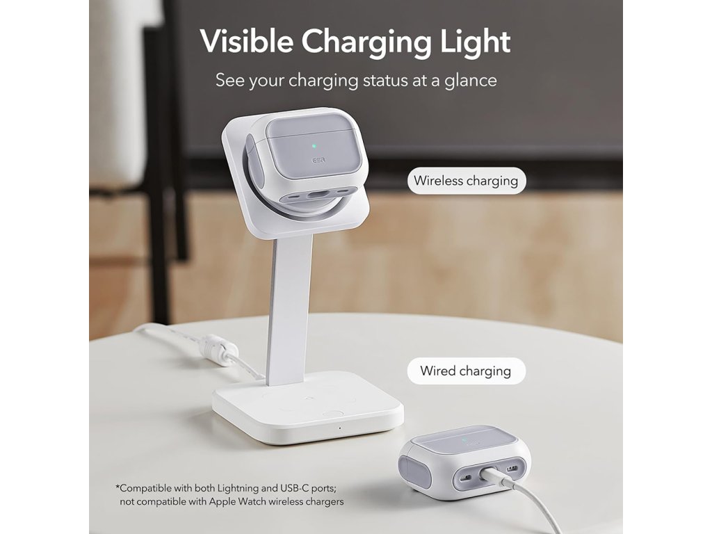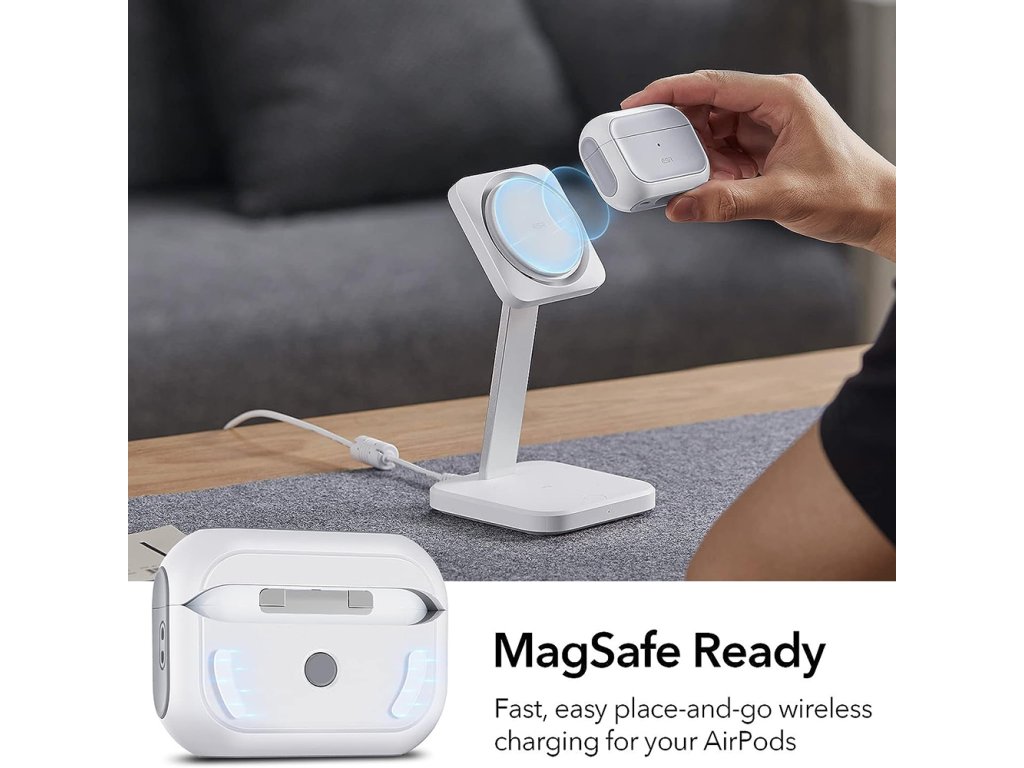 Chcete kompaktní pouzdro, které perfektně sedí na vaše sluchátka? Pouzdro ESR⚡má výřezy pro reproduktory a LED diodu, která ukazuje stav nabíjení.