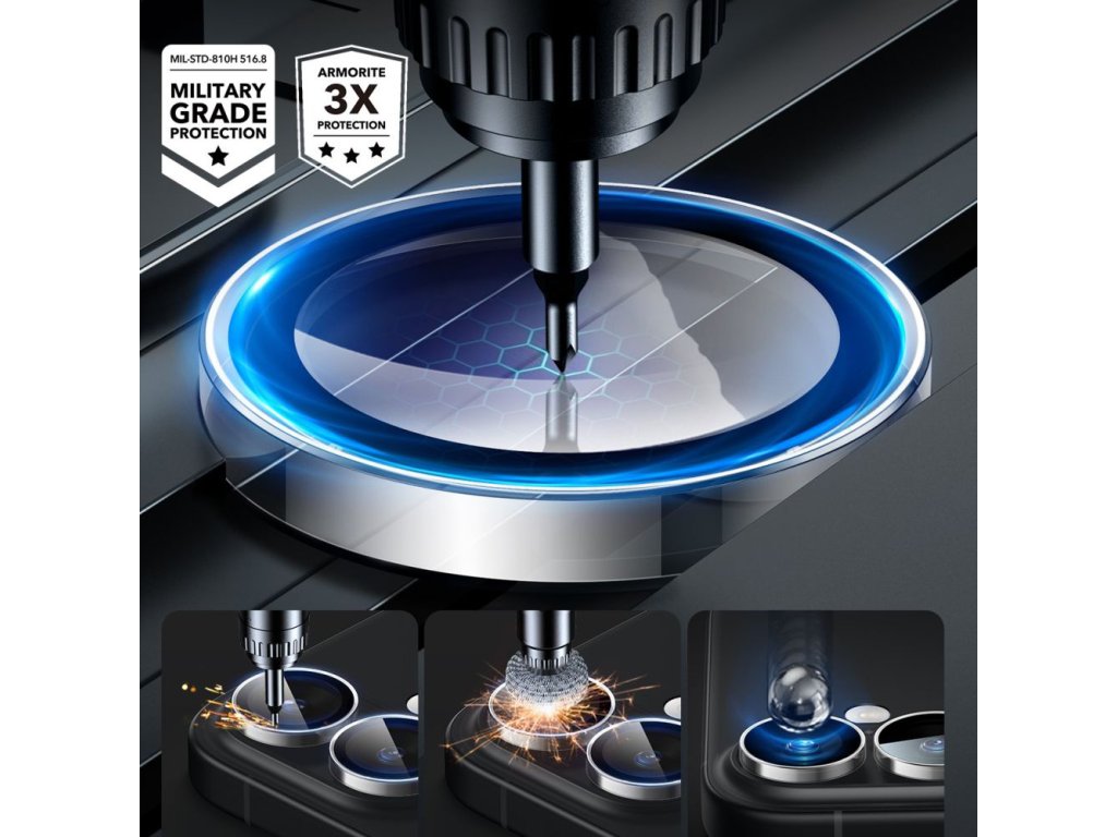 Originální sklo pro kameru iPhone 16 značky ESR má vojenský standard MIL-STD 810H-516.8, takže je velmi účinné proti nárazům. Proč se spokojit s méně?