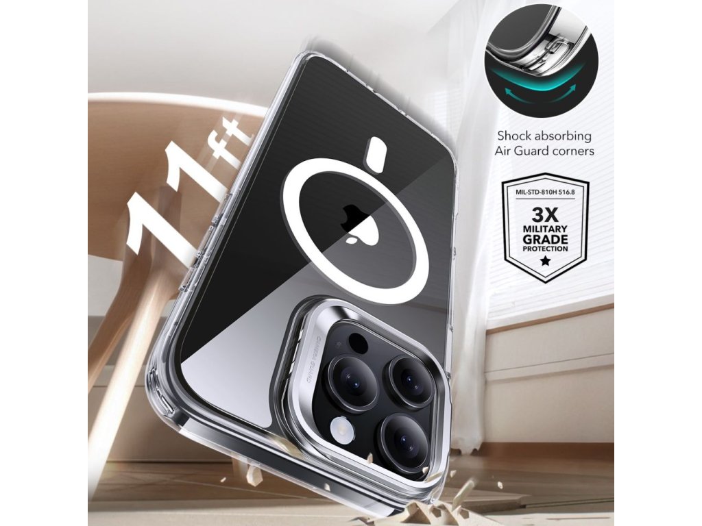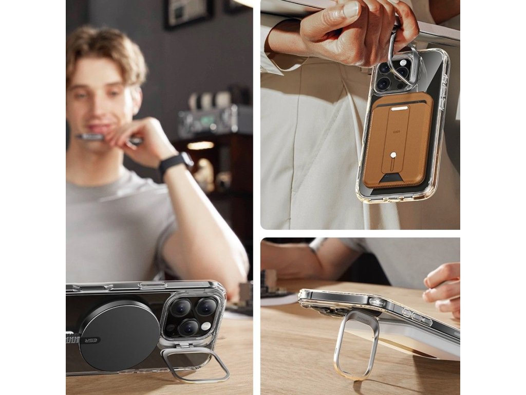 ESR Classic Hybrid HaloLock kryt se stojanem a sklem na iPhone 16 Pro – průhledný
