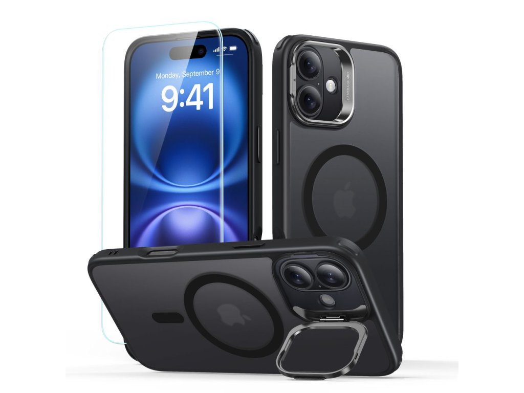 ESR Classic Hybrid HaloLock ochranný kryt se stojanem + tvrzené sklo pro iPhone 16 - matný černý