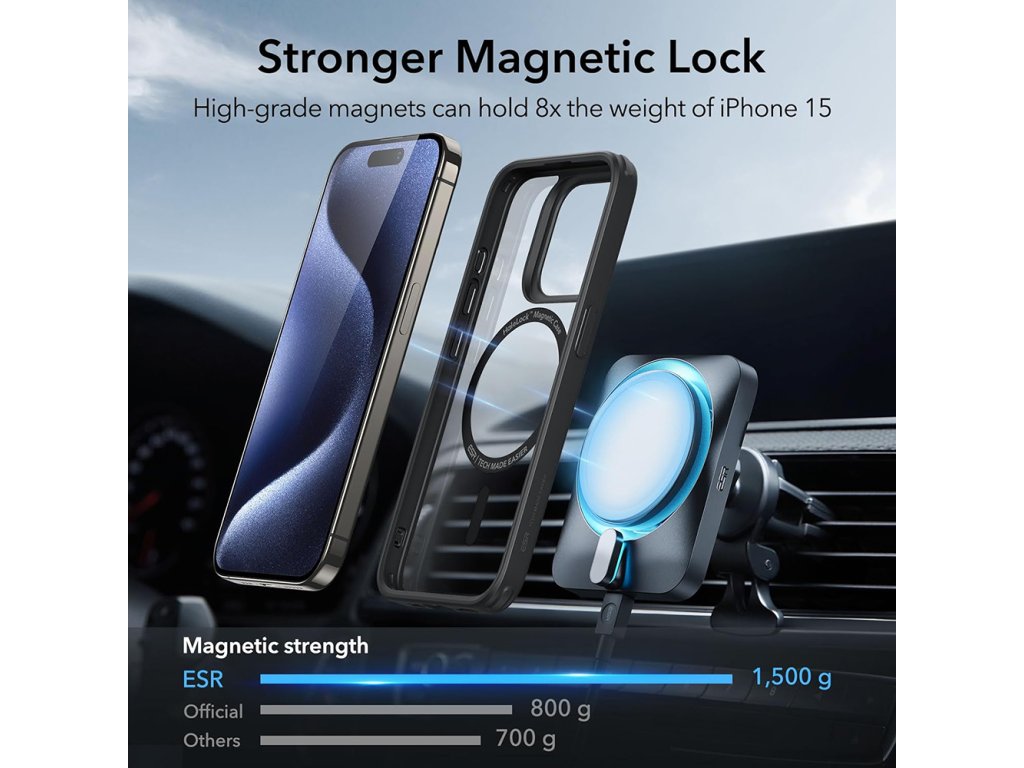 ESR Classic Hybrid HaloLock pouzdro pro iPhone 15 Pro Max – čiré/černé