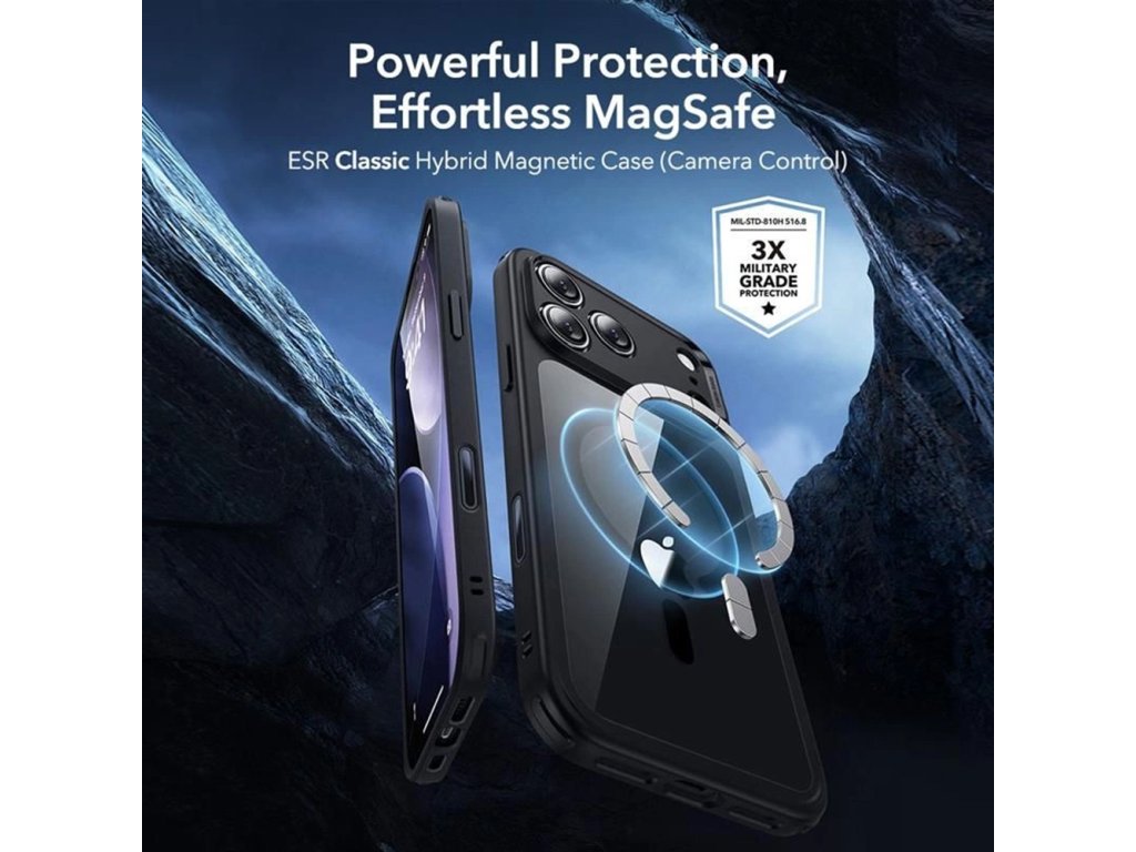 ESR - Classic Hybrid HaloLock pouzdro s ochranným sklem pro iPhone 17 Pro Max - průhledné černé