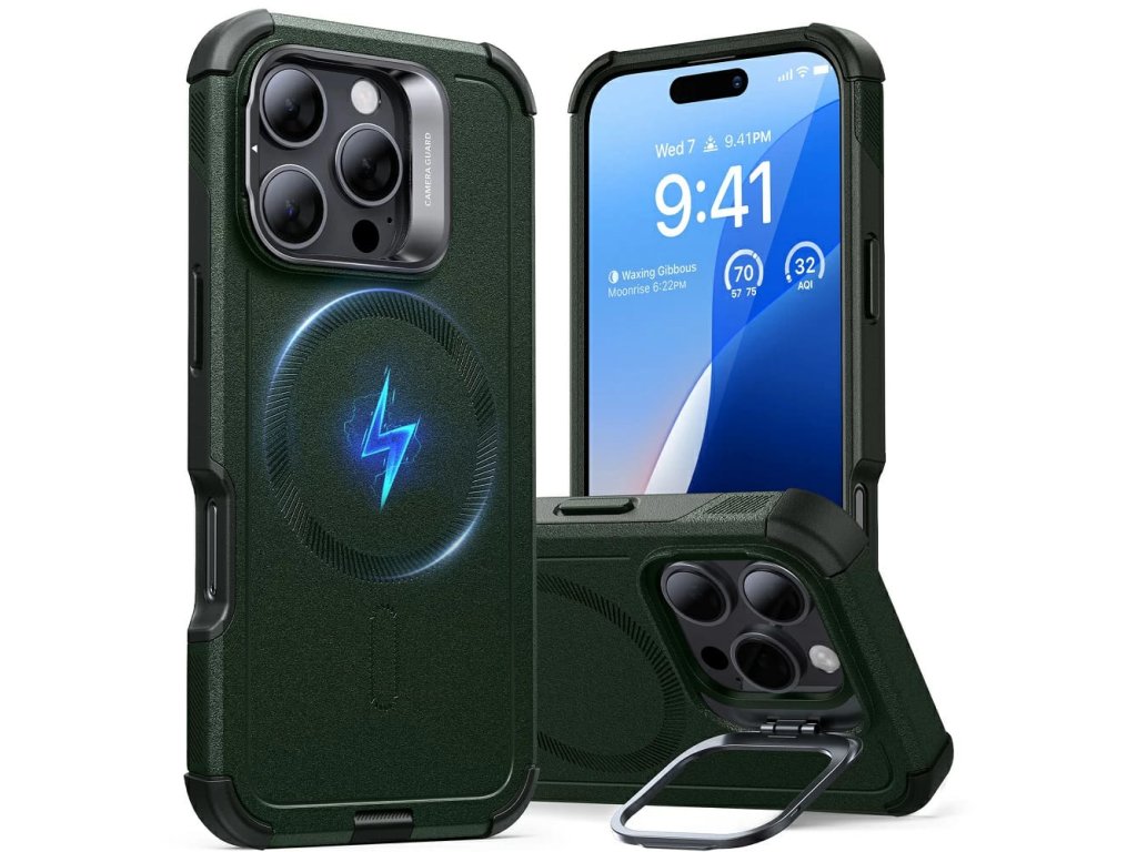 ESR Cyber Armor Kickstand pouzdro pro iPhone 16 Pro – zelené