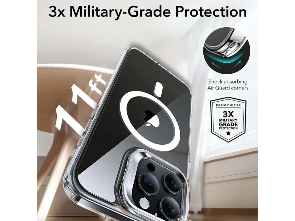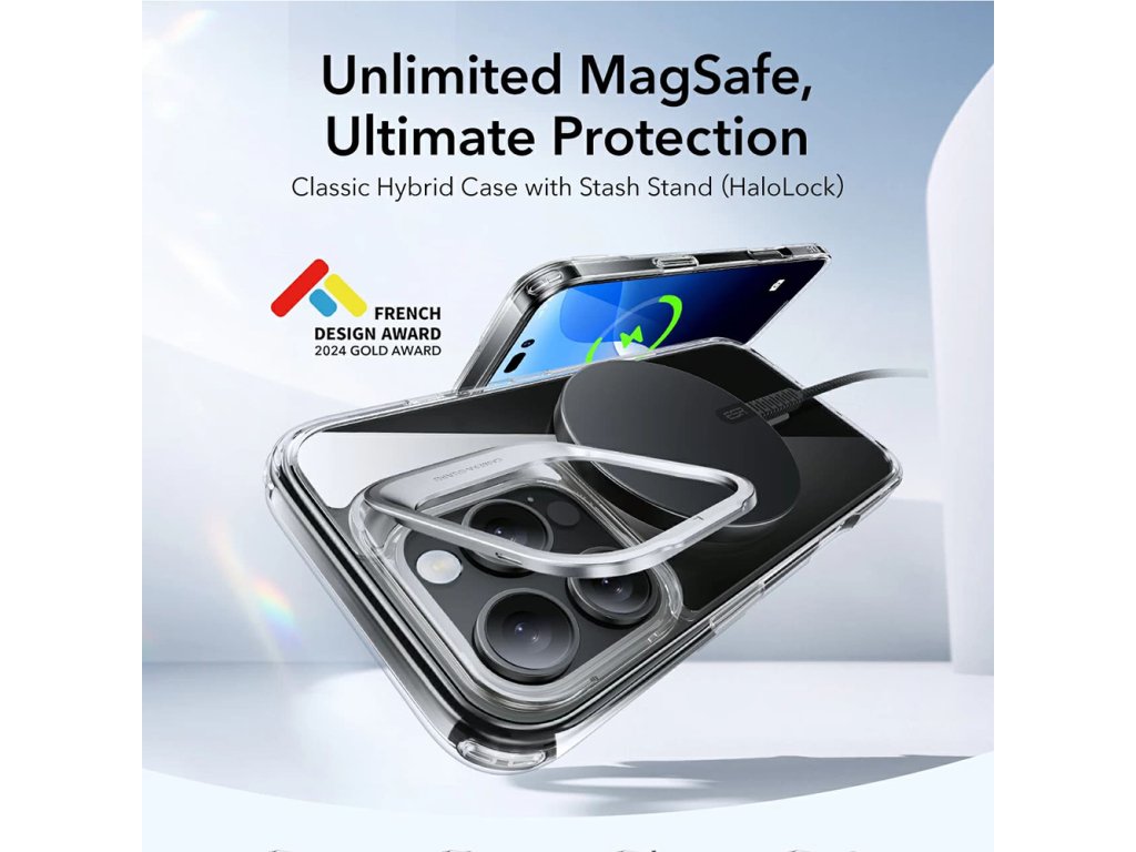 ESR Kryt Classic Hybrid HaloLock Kickstand pro iPhone 16 Pro – šedý průhledný