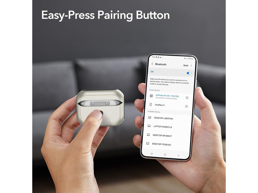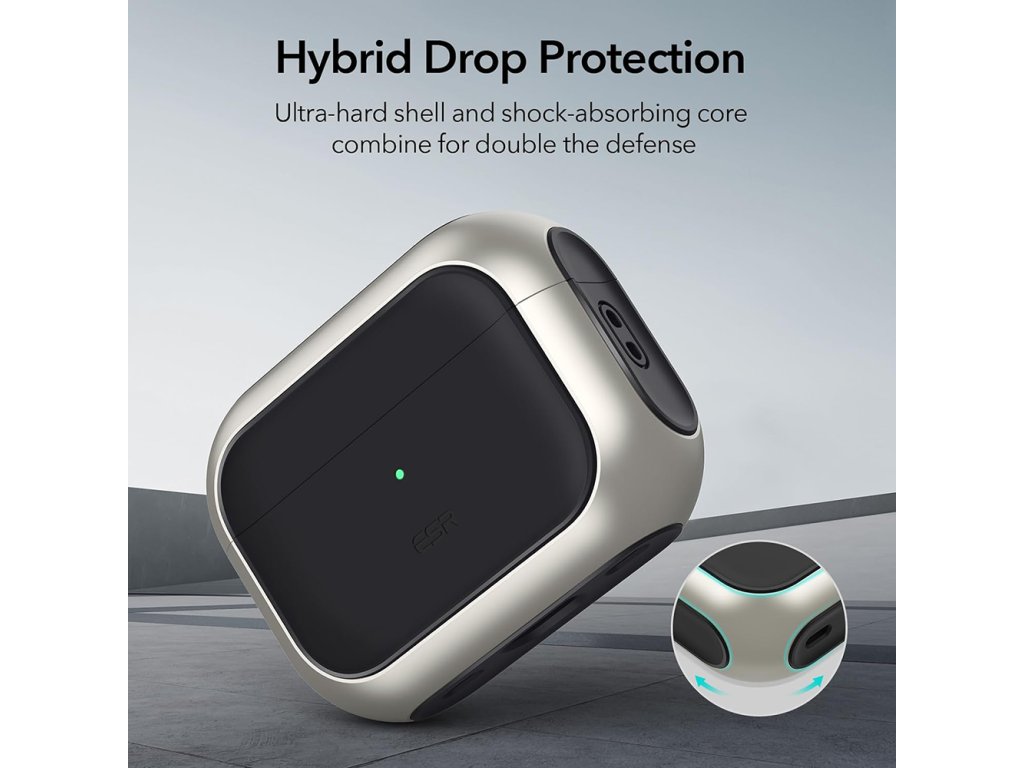 Chcete kompaktní pouzdro, které dokonale padne k vašim sluchátkům? Pouzdro ESR⚡má výřezy pro reproduktory a LED diodu, která ukazuje stav nabíjení.