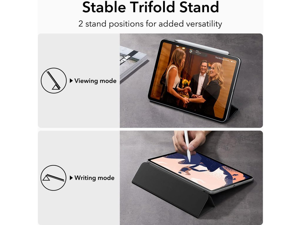 ESR Rebound Series pouzdro pro iPad Pro 11" 2021 je dodáváno se stojanem typu stand, který se skládá ze 3 částí a je nastavitelný do několika úhlů, což usnadňuje sledování médií a v poloze na šířku. Oblíbený iPad Pro 11" 2021 bude mít plnou ochranu!