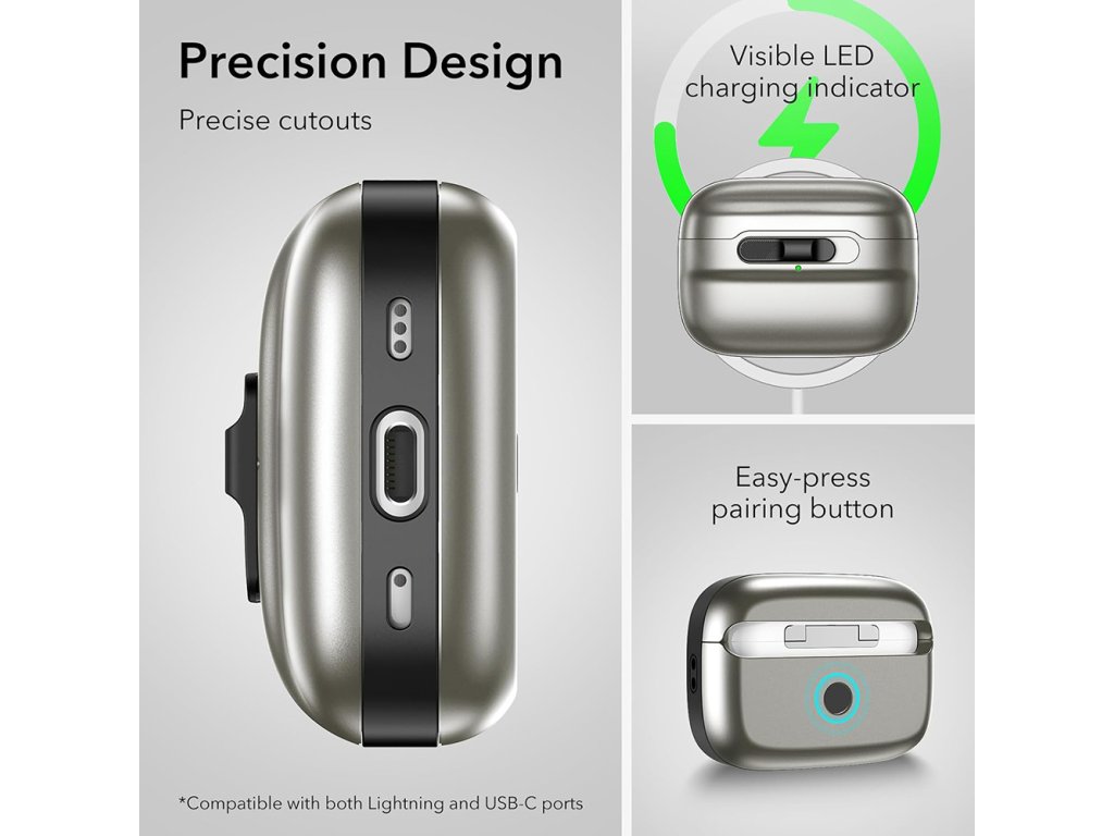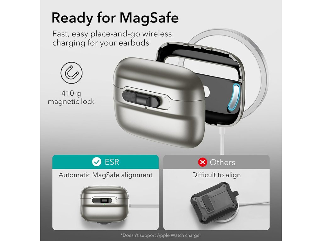 ESR Pulse Magnetic HaloLock pouzdro pro Apple AirPods Pro 1/2 – titanové