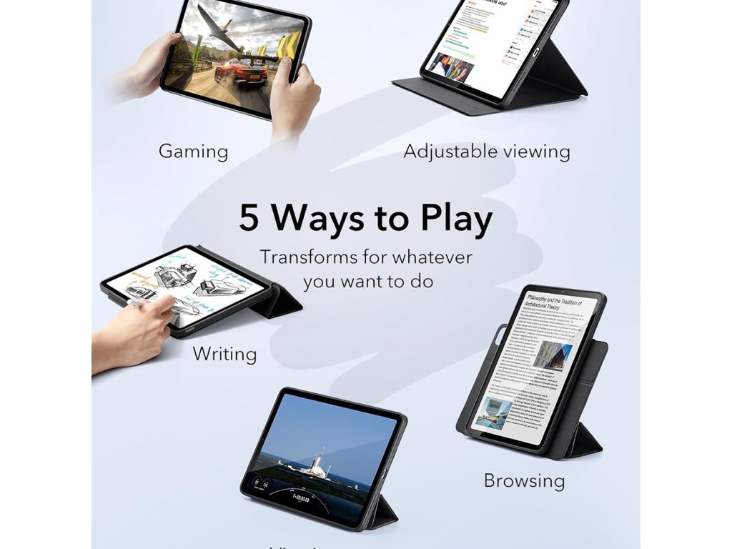 Nyní již nepotřebujete dodatečný stojánek na stůl. Odolné pouzdro umožňuje umístit tablet tak, jak si přejete.