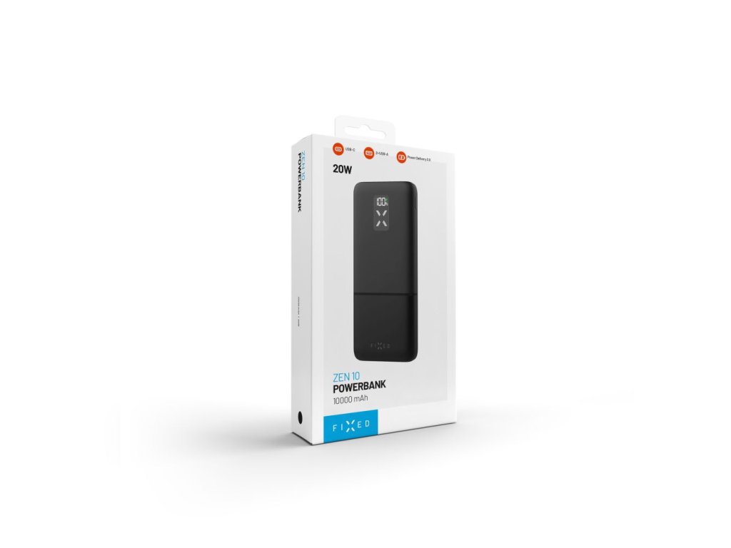 Fixed powerbanka Zen 10 (FIXZEN-10-BK) - 2× USB, USB-C, 20W, 10000mAh, LCD displej, černá