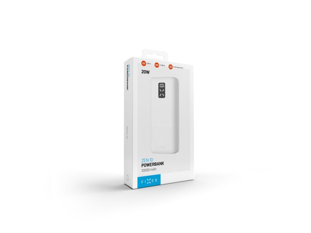 Fixed powerbanka Zen 10 (FIXZEN-10-WH) - 2× USB, USB-C, 20W, 10000mAh, LCD displej, bílá