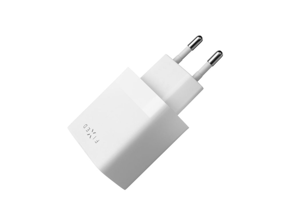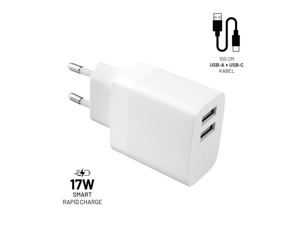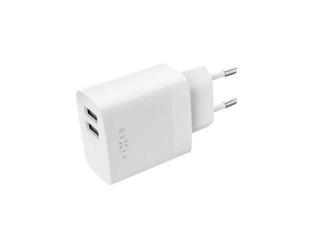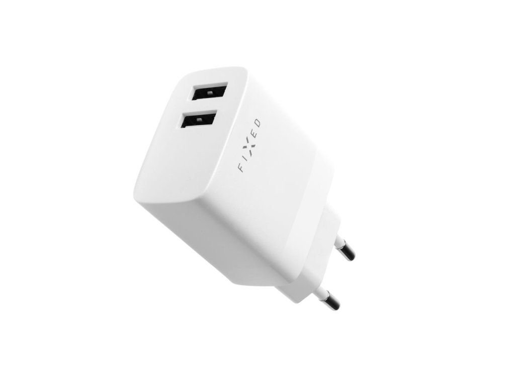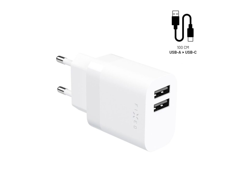 Fixed - Wall Charger síťová nabíječka (2× USB, cestovní rozměr, 17W, USB-C kabel 1 m) - bílá