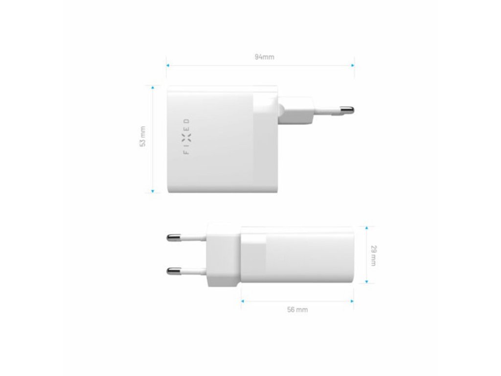 Fixed - Wall Charger síťová nabíječka (super rychlonabíjení, 2× USB-C, Power Delivery 3.0, 65W) - bílá