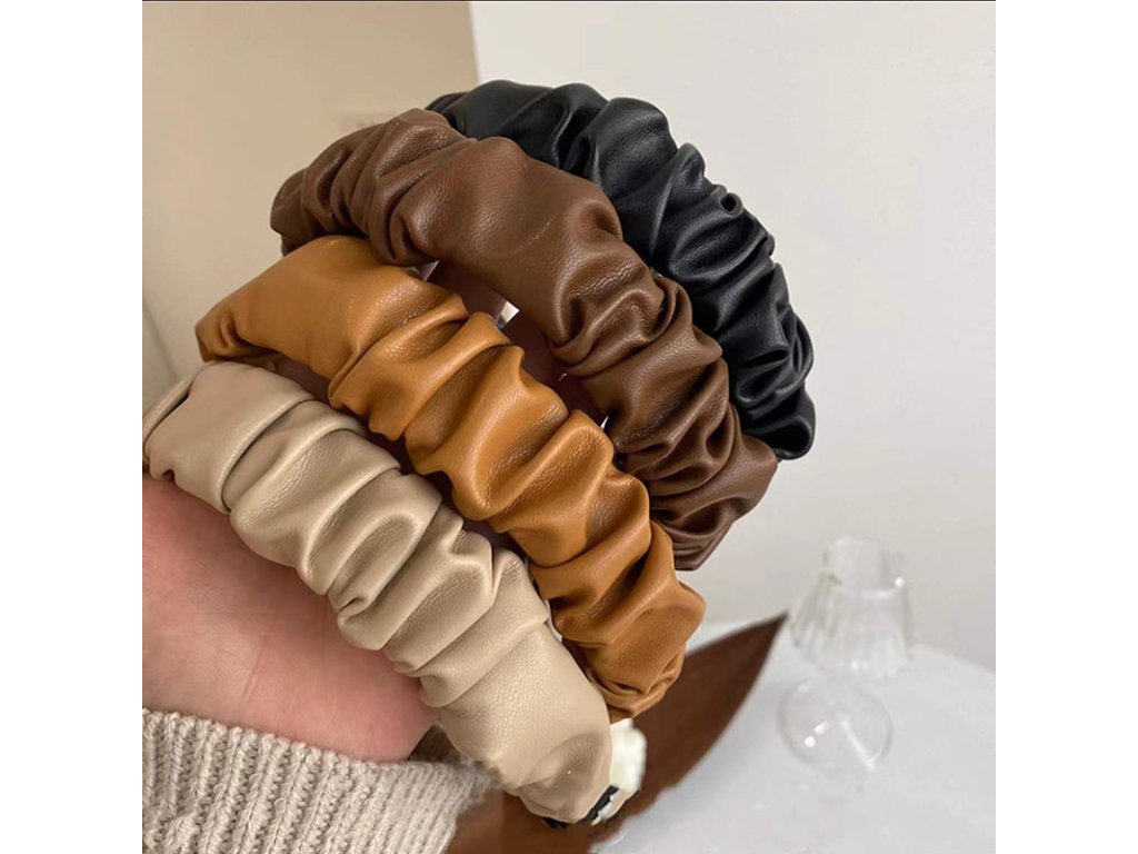 Stylová koženková čelenka s řasením. Ideální k doplnění jakéhokoli outfitu. Čelenky jsou jedním z nejžádanějších módních doplňků.