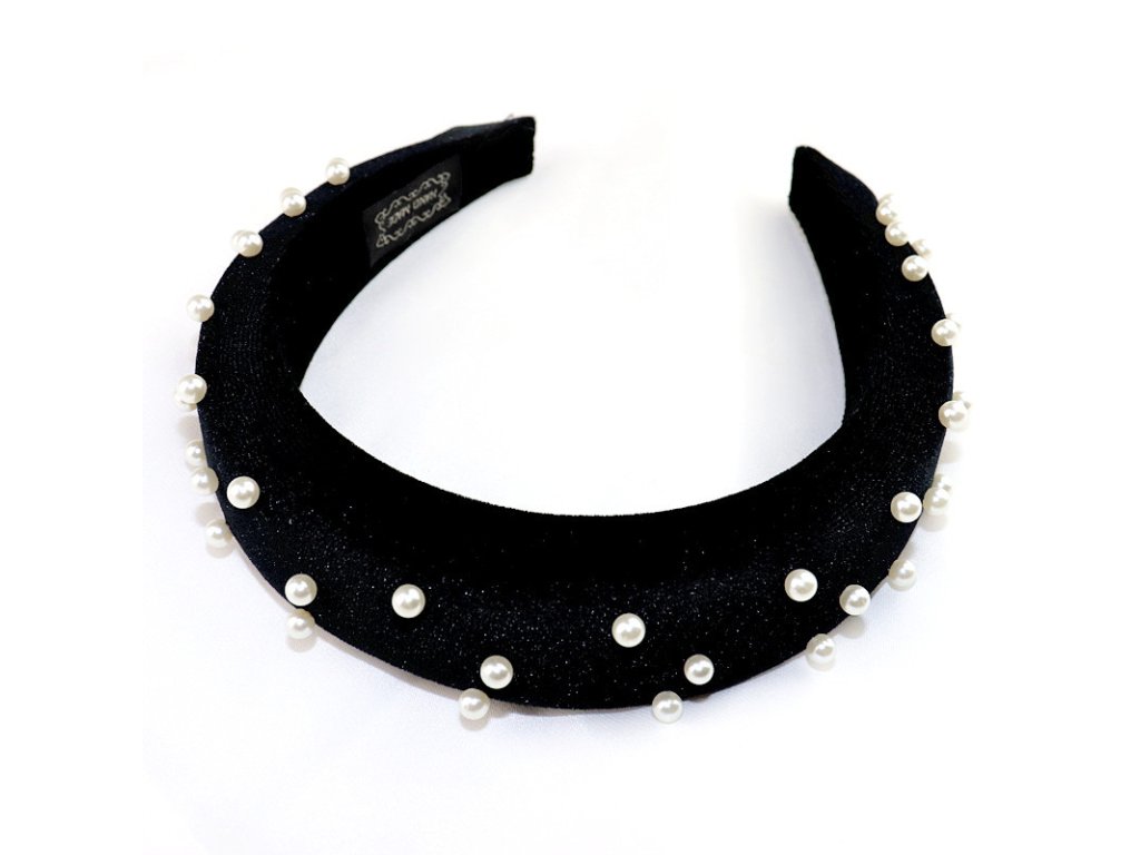 Girly Sametová čelenka s perličkami černá