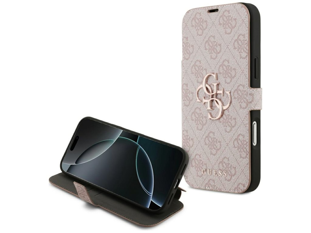 Guess – Book 4G Metal Logo knížkové pouzdro na iPhone 17 Pro Max – růžové