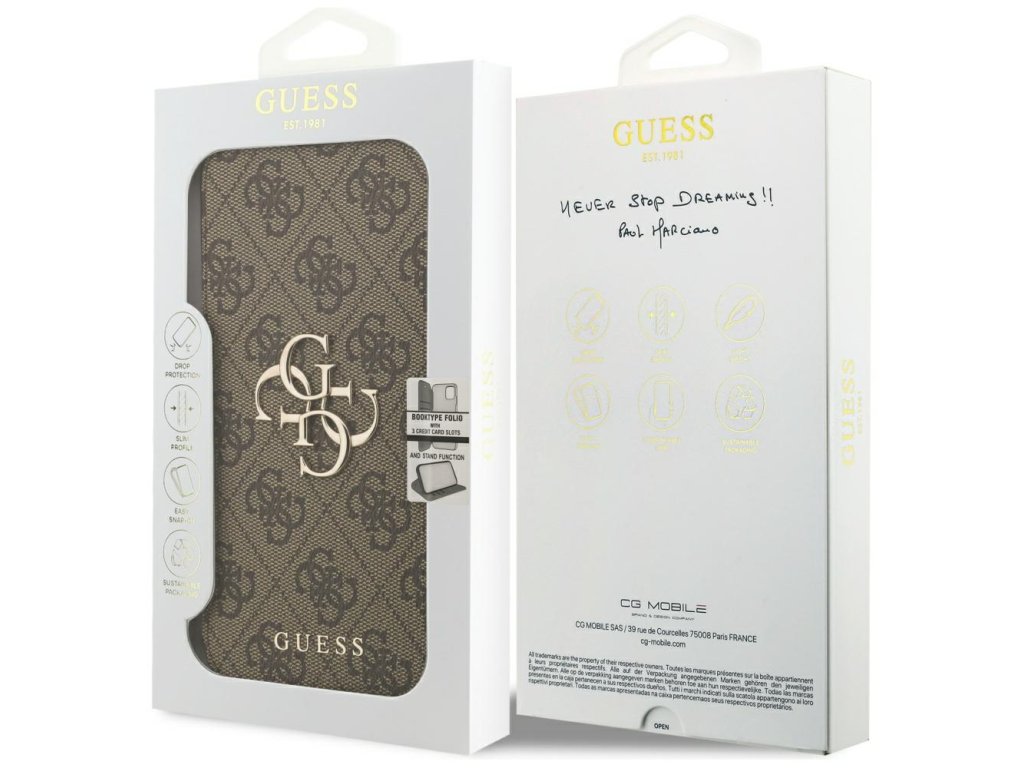 Guess – Book 4G Metal Logo knížkové pouzdro pro iPhone 17 Pro Max – hnědé