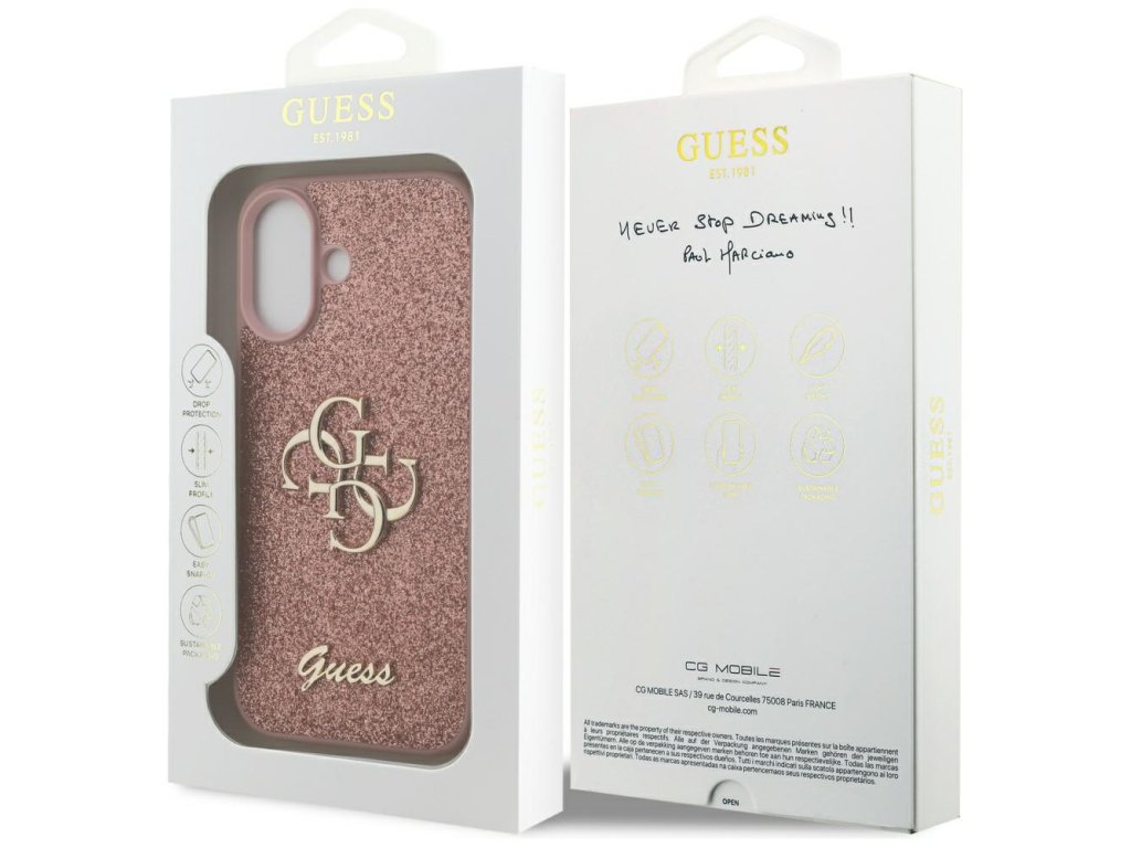 Guess – Fixed Glitter Big 4G pouzdro na iPhone 17 – růžové