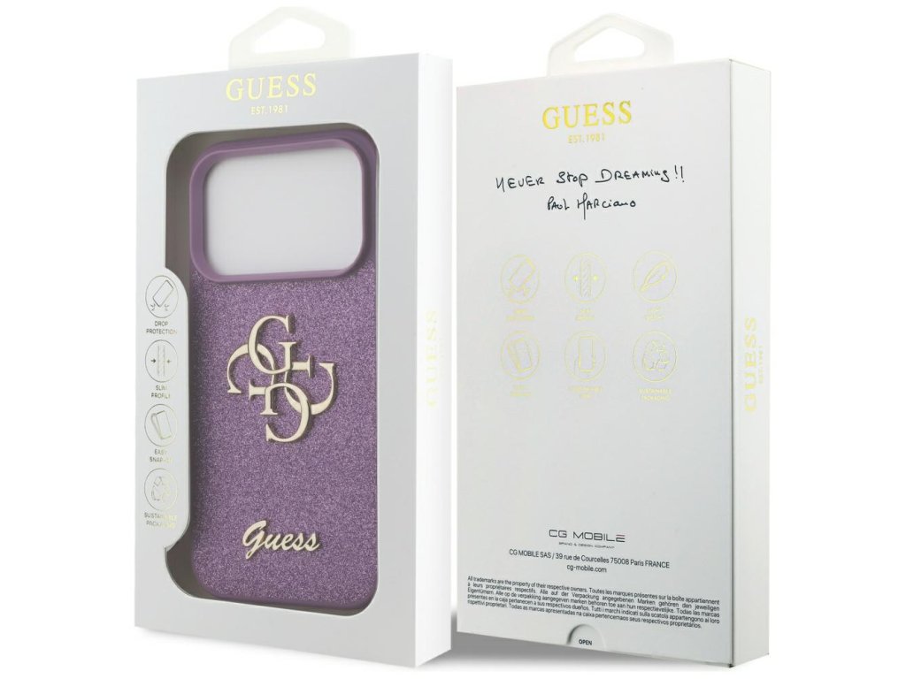 Guess – Fixed Glitter Big 4G pouzdro na iPhone 17 Pro Max – fialové (lilac)