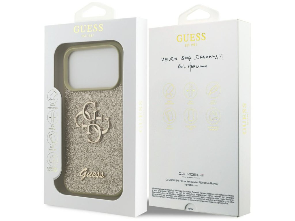 Guess – Fixed Glitter Big 4G pouzdro na iPhone 17 Pro Max – zlaté