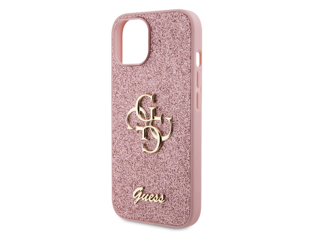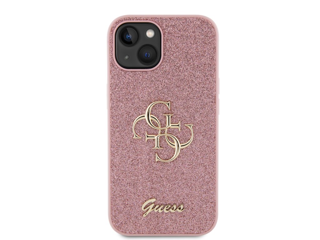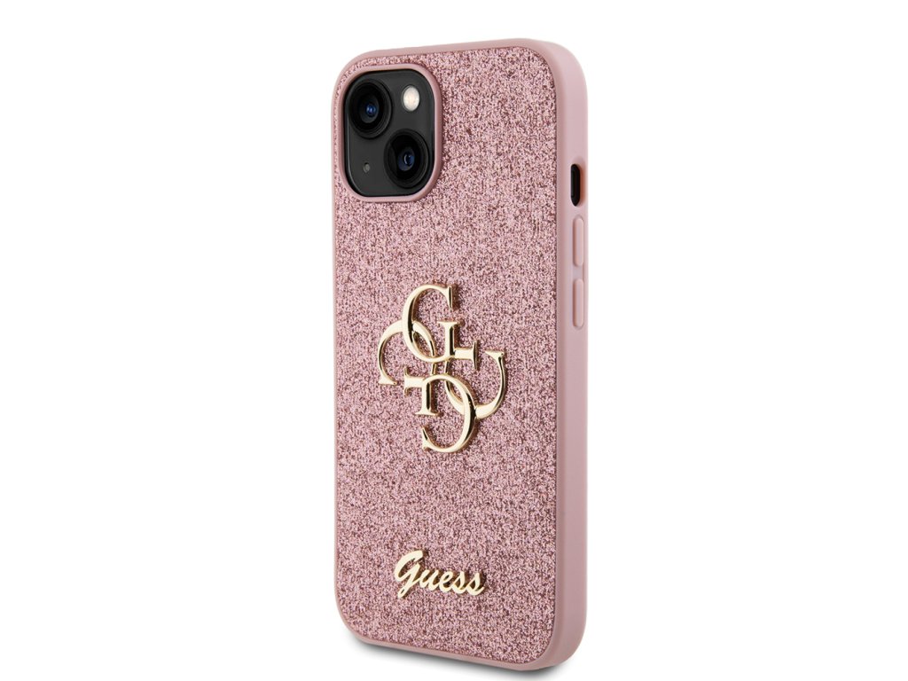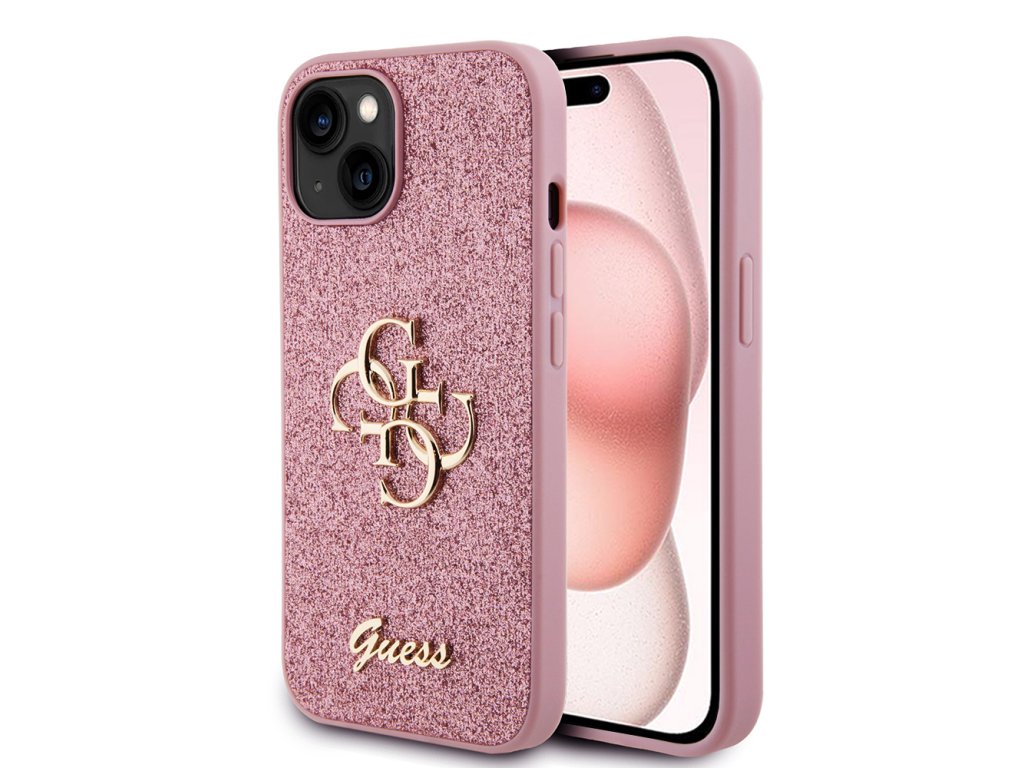 Guess – Glitter Script Big 4G – ochranný obal – iPhone 15 – růžový
