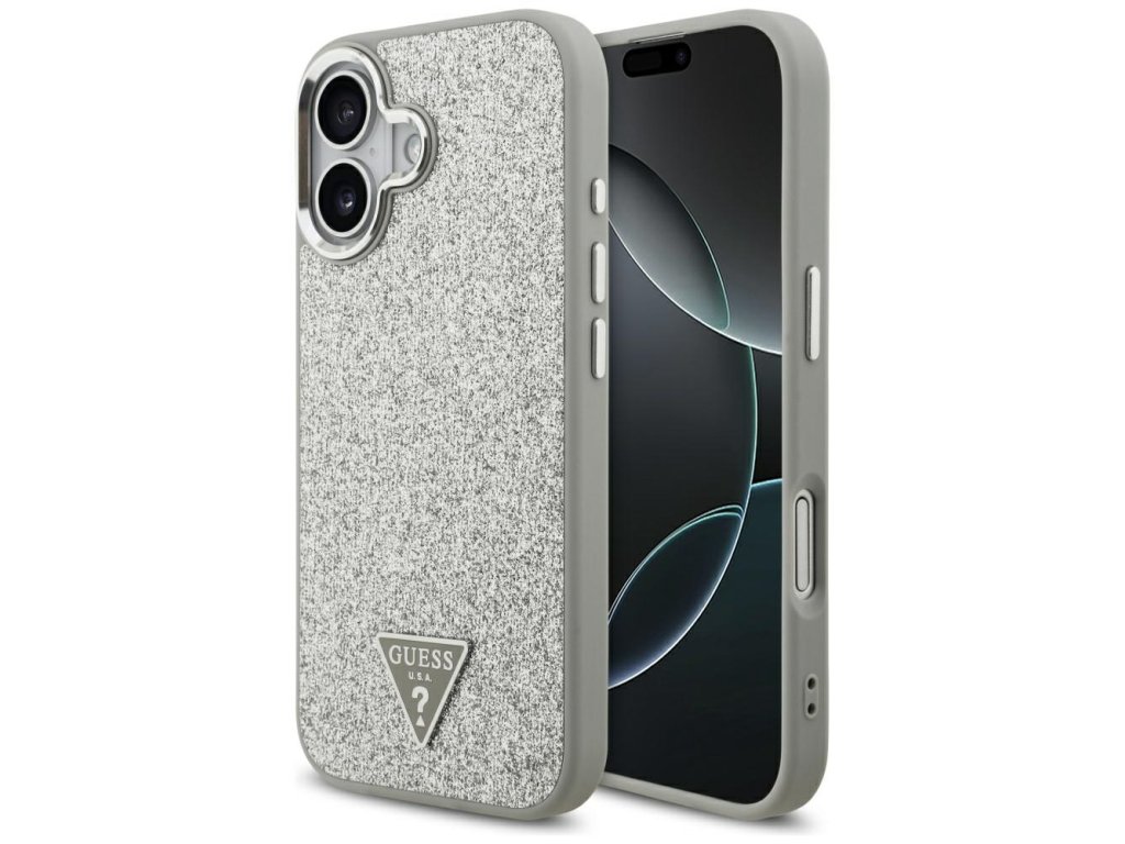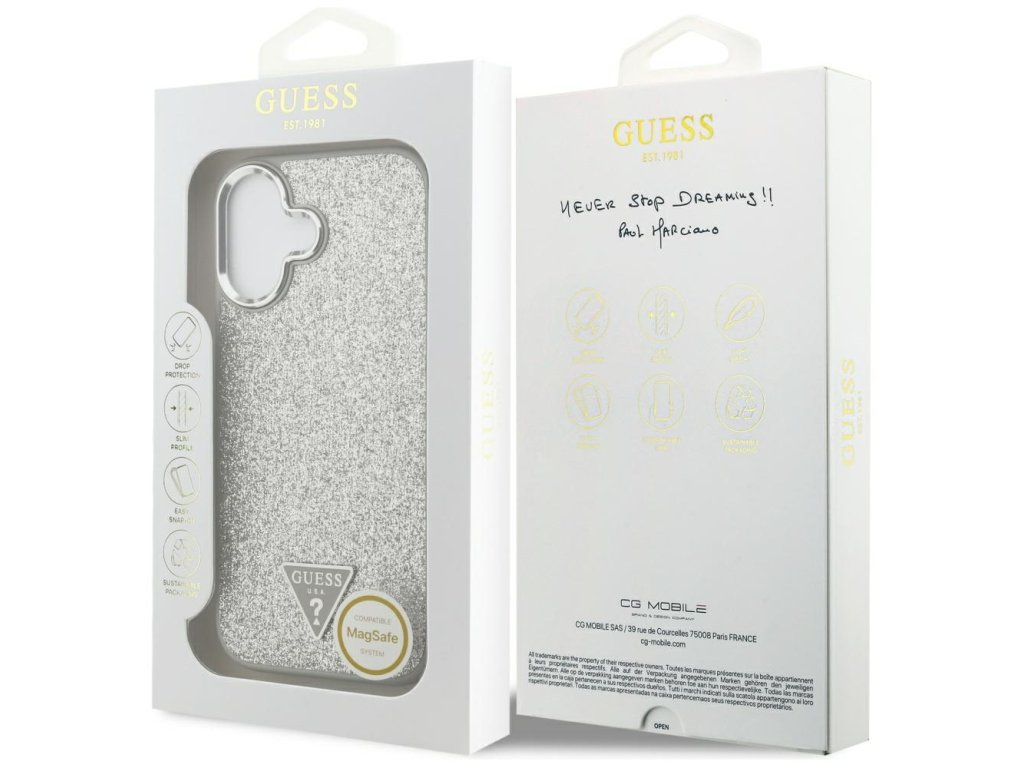 Guess – Glitter Triangle Logo MagSafe pouzdro na iPhone 17 – stříbrné