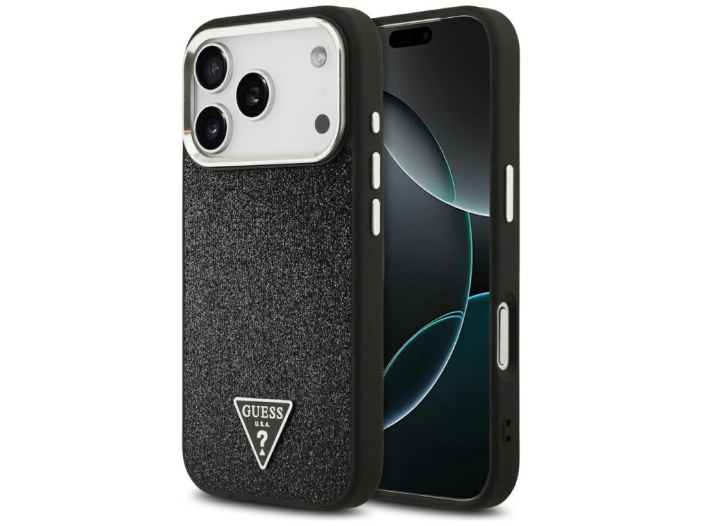 Guess – Glitter Triangle Logo MagSafe pouzdro na iPhone 17 Pro – černé