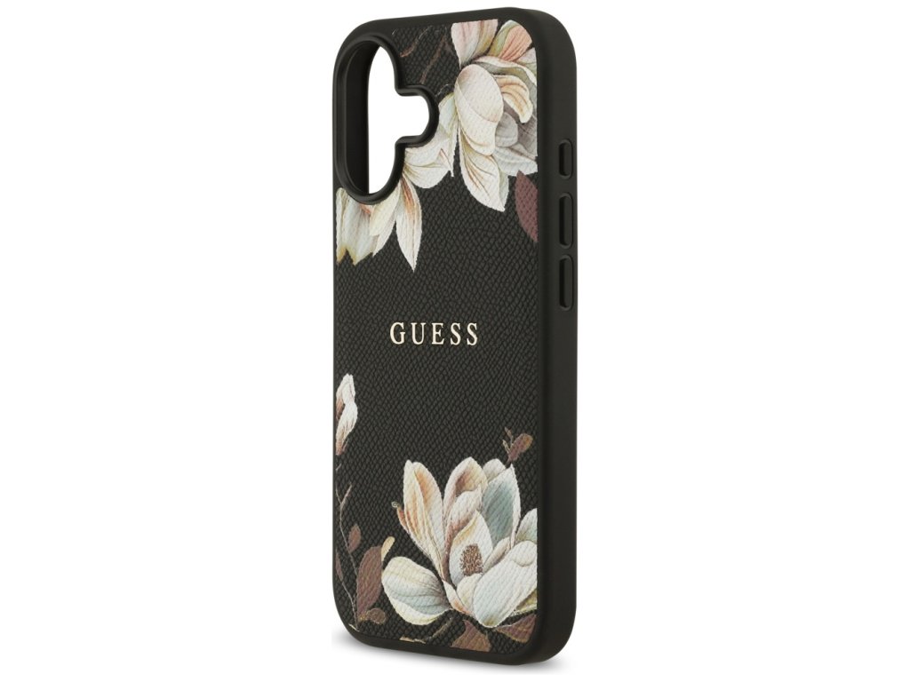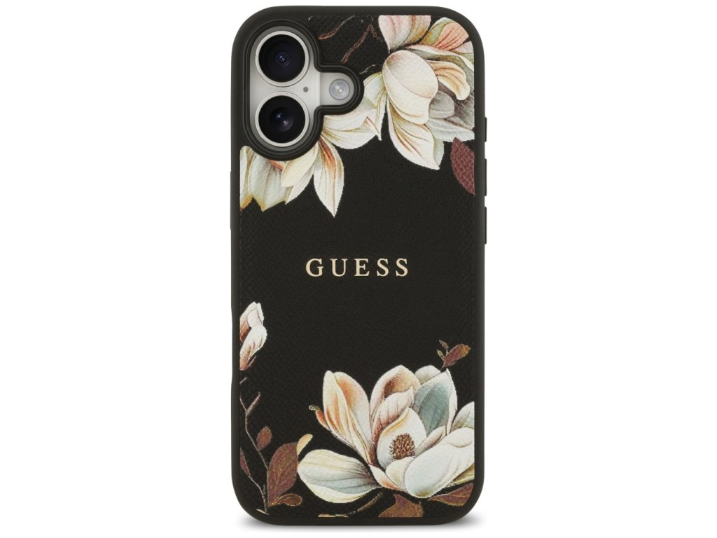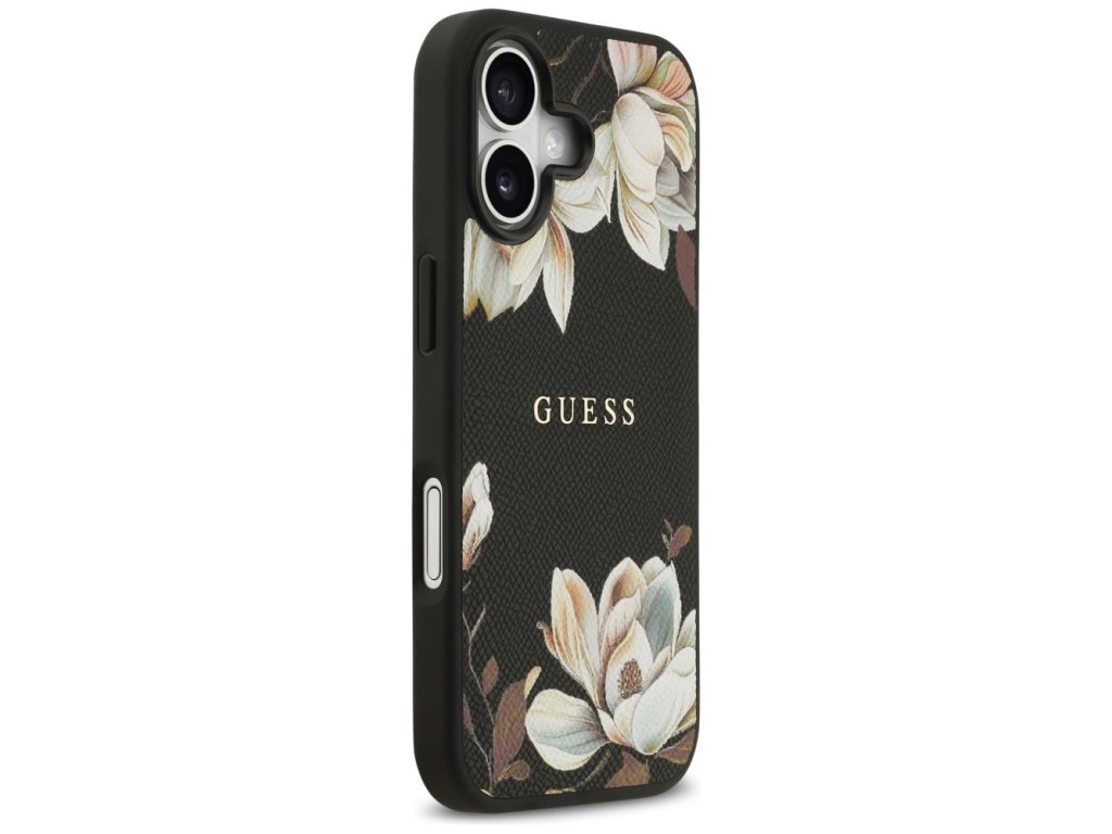 Guess – Grained Flowers MagSafe pouzdro na iPhone 17 – černé