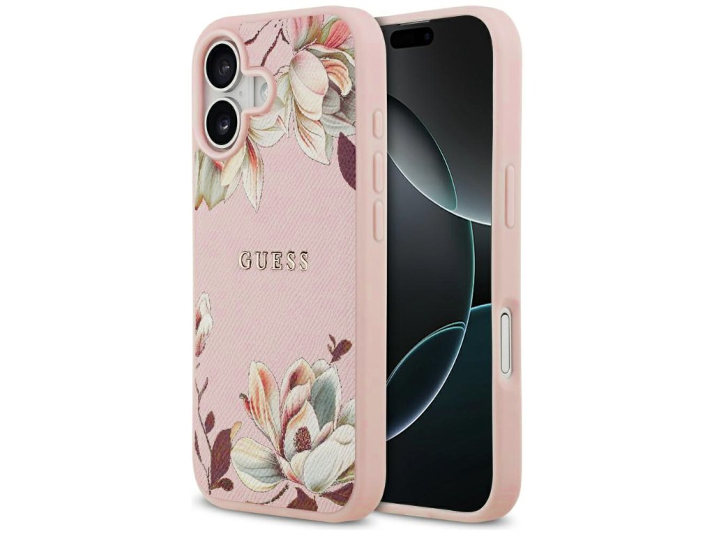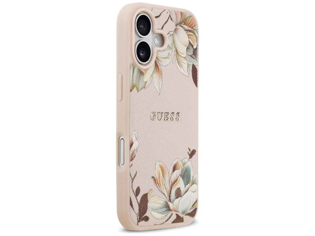 Guess – Grained Flowers MagSafe pouzdro na iPhone 17 – růžové