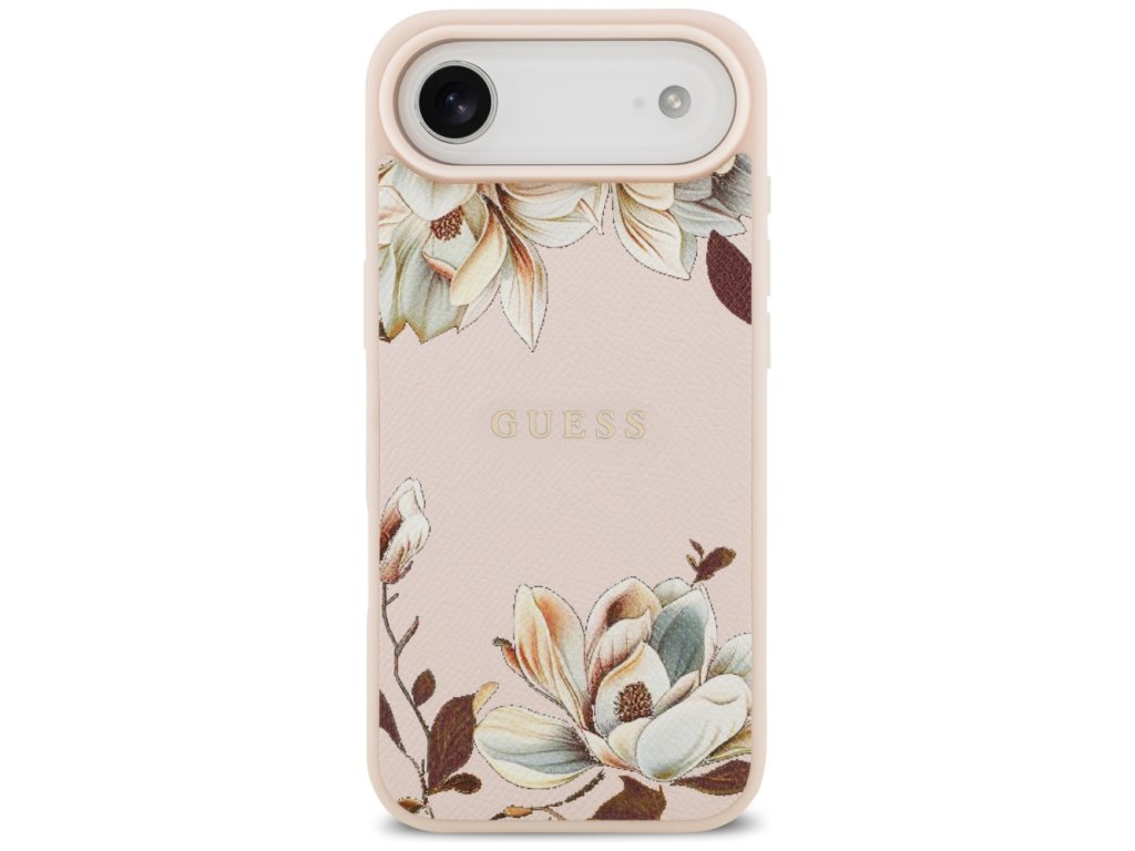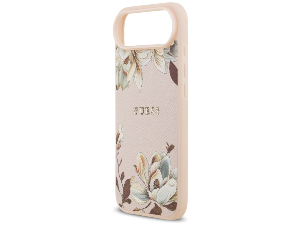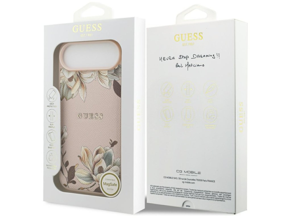 Guess – Grained Flowers MagSafe pouzdro na iPhone 17 Air – růžové