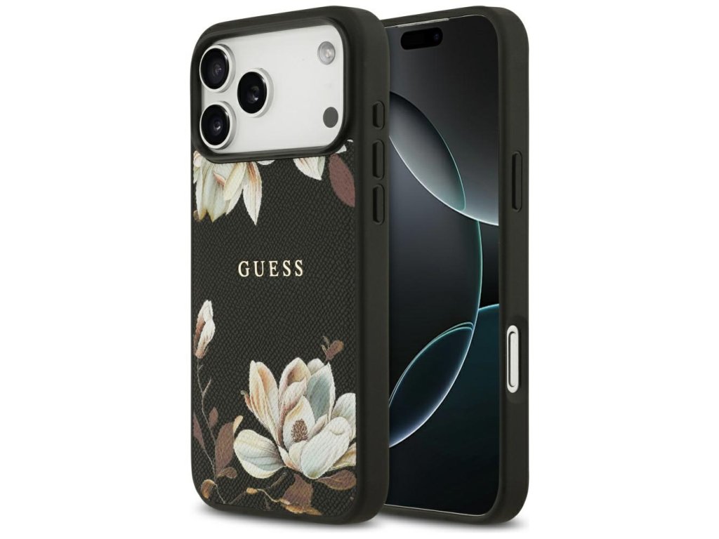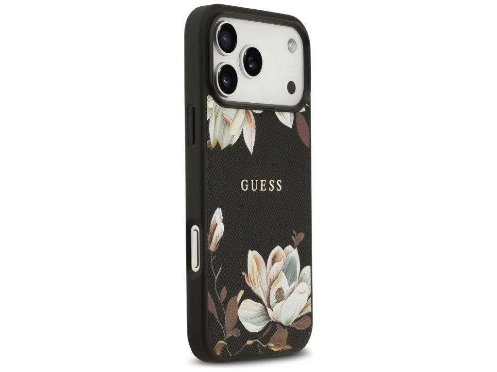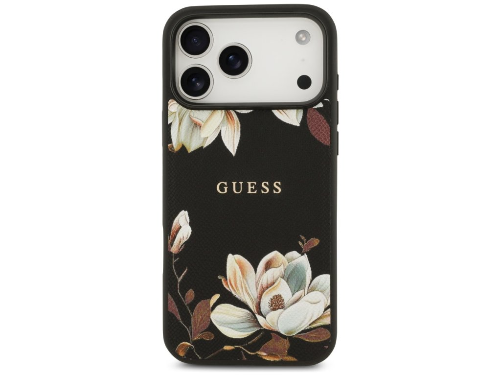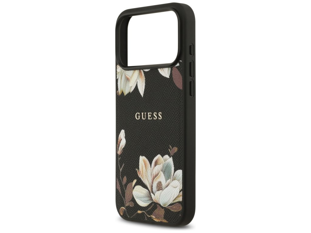 Guess – Grained Flowers MagSafe pouzdro na iPhone 17 Pro Max – černé